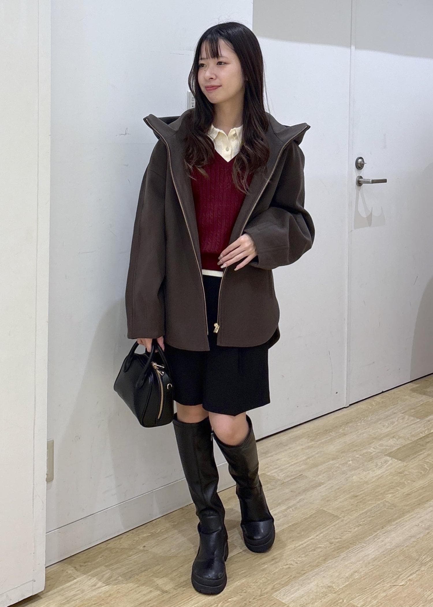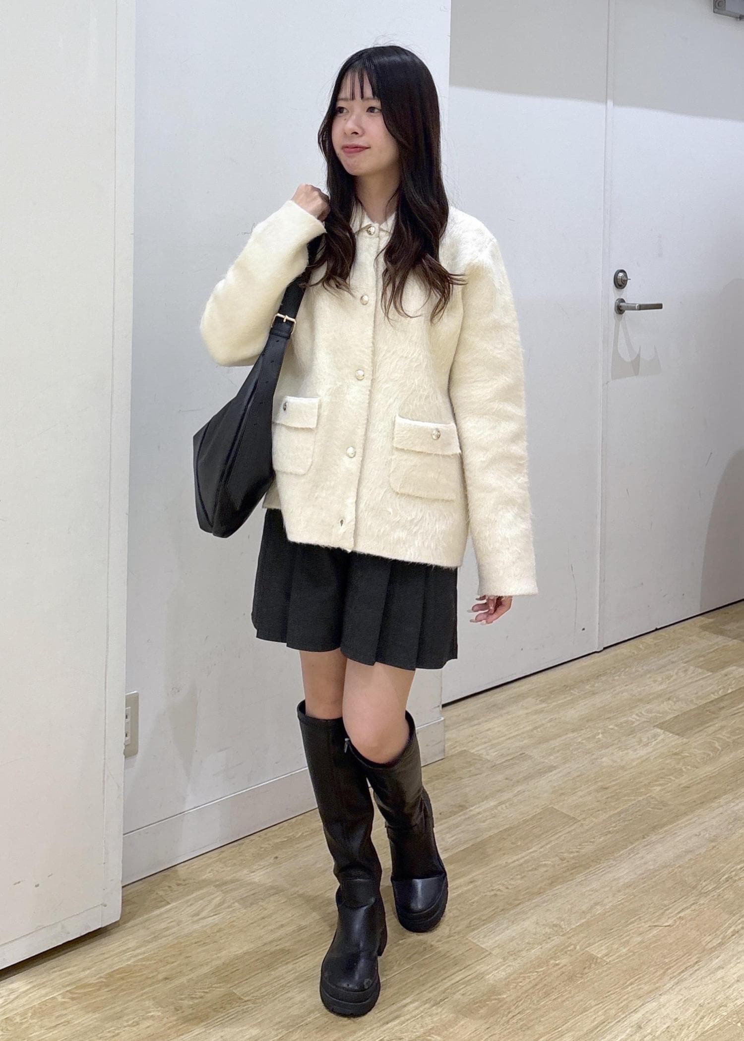 トレンドのフェザーニットにマーメイドスカートを合わせて、キレイめな冬のお出かけコーディネートにしました◎