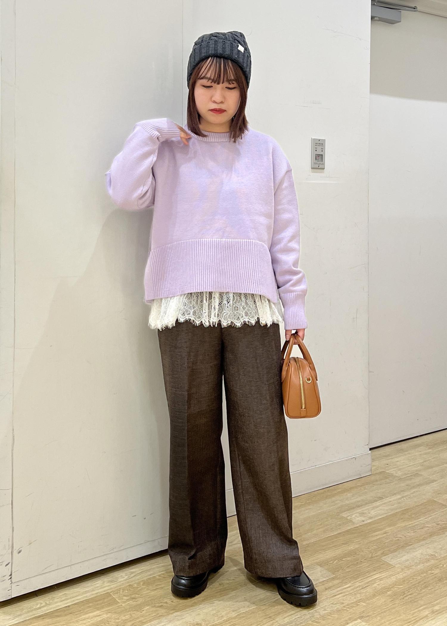 ニットはクロップド丈なので、ロングスカートと合わせてもすっきりと着用できます♪
