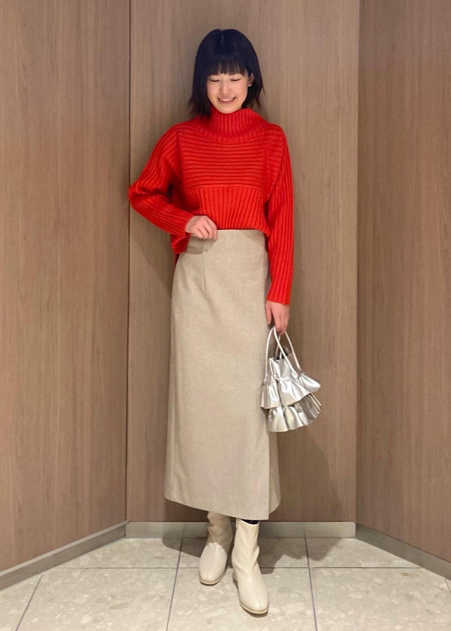 ニットが主役になるようにベーシックカラーでまとめました◎