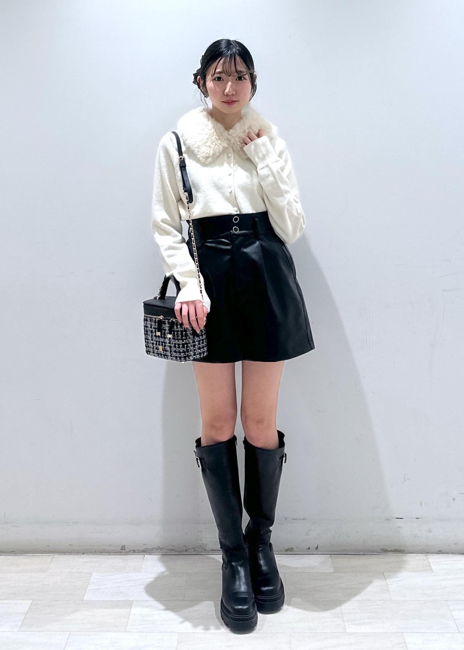 ラメニットは丈感が短めなのでペプラムシャツとのレイヤードは相性抜群◎