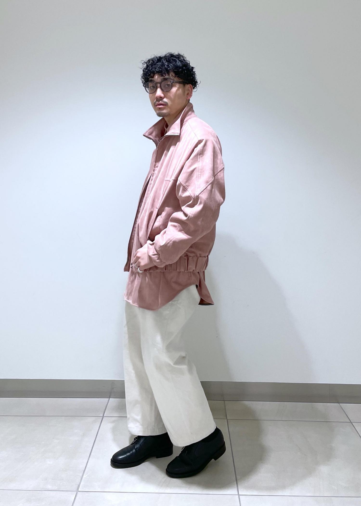 同素材のシャツとブルゾンを合わせて統一感を持たせました♪