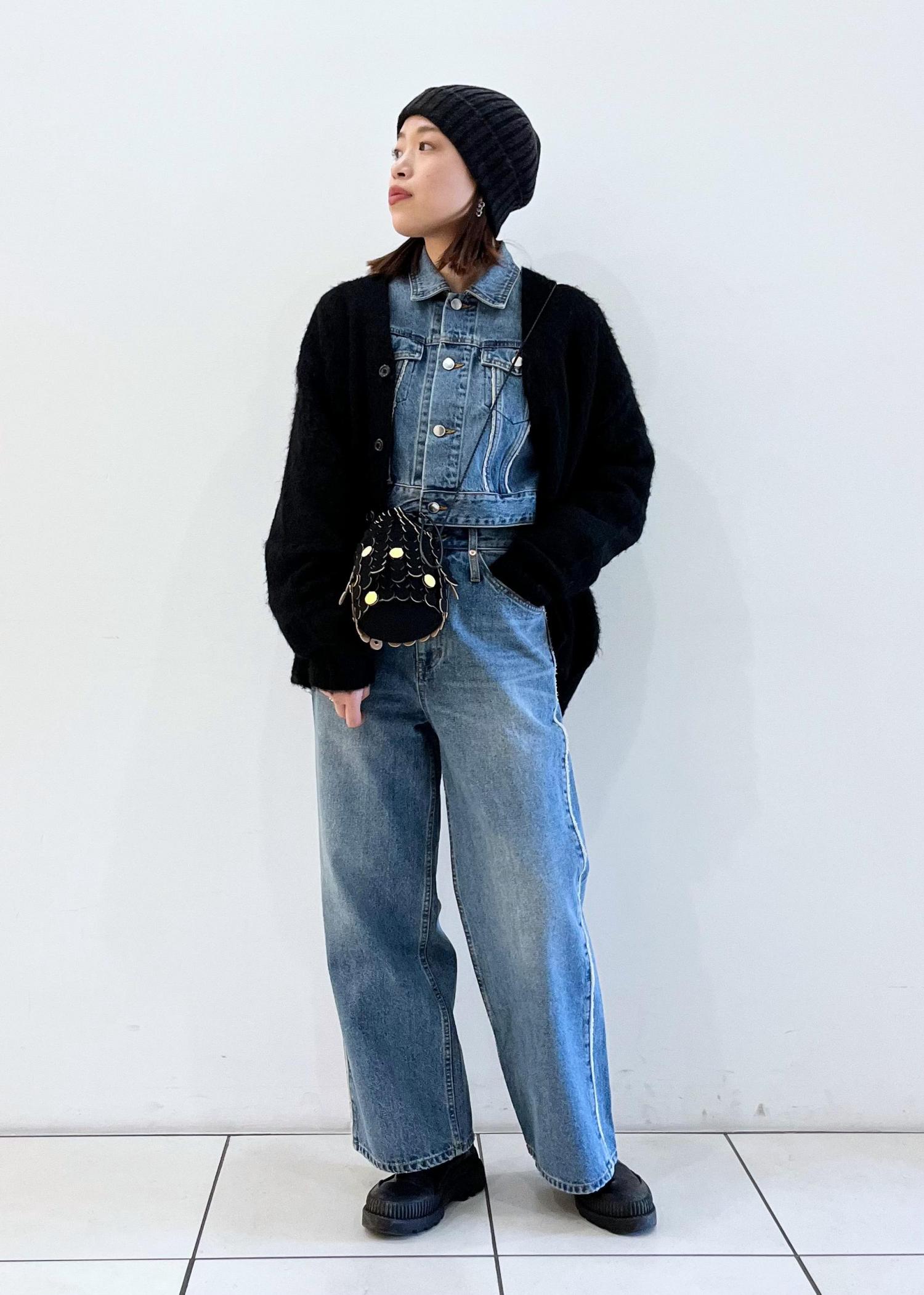 フリンジディテールがアクセントになり、デニムセットアップも女っぽくまとまります!