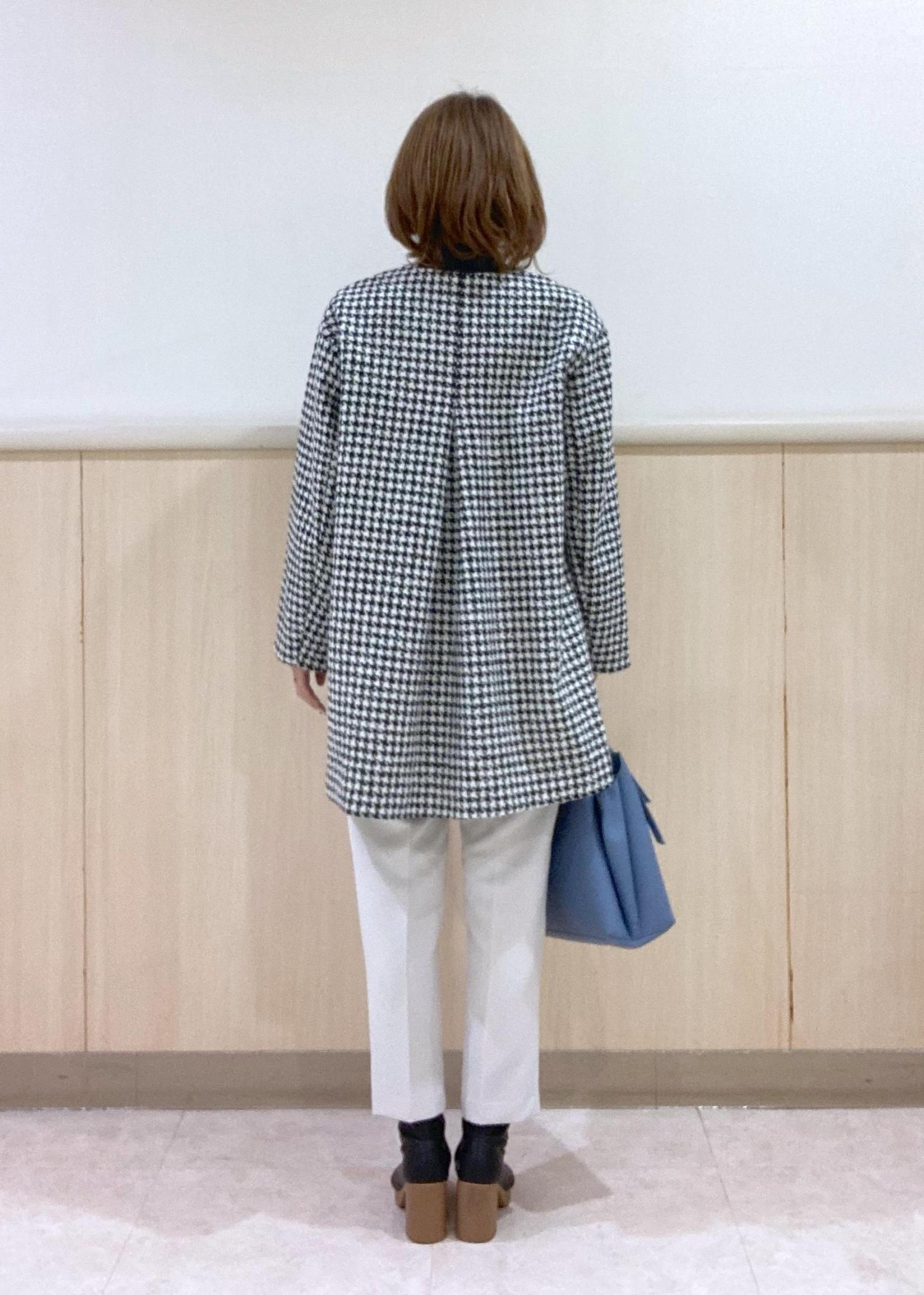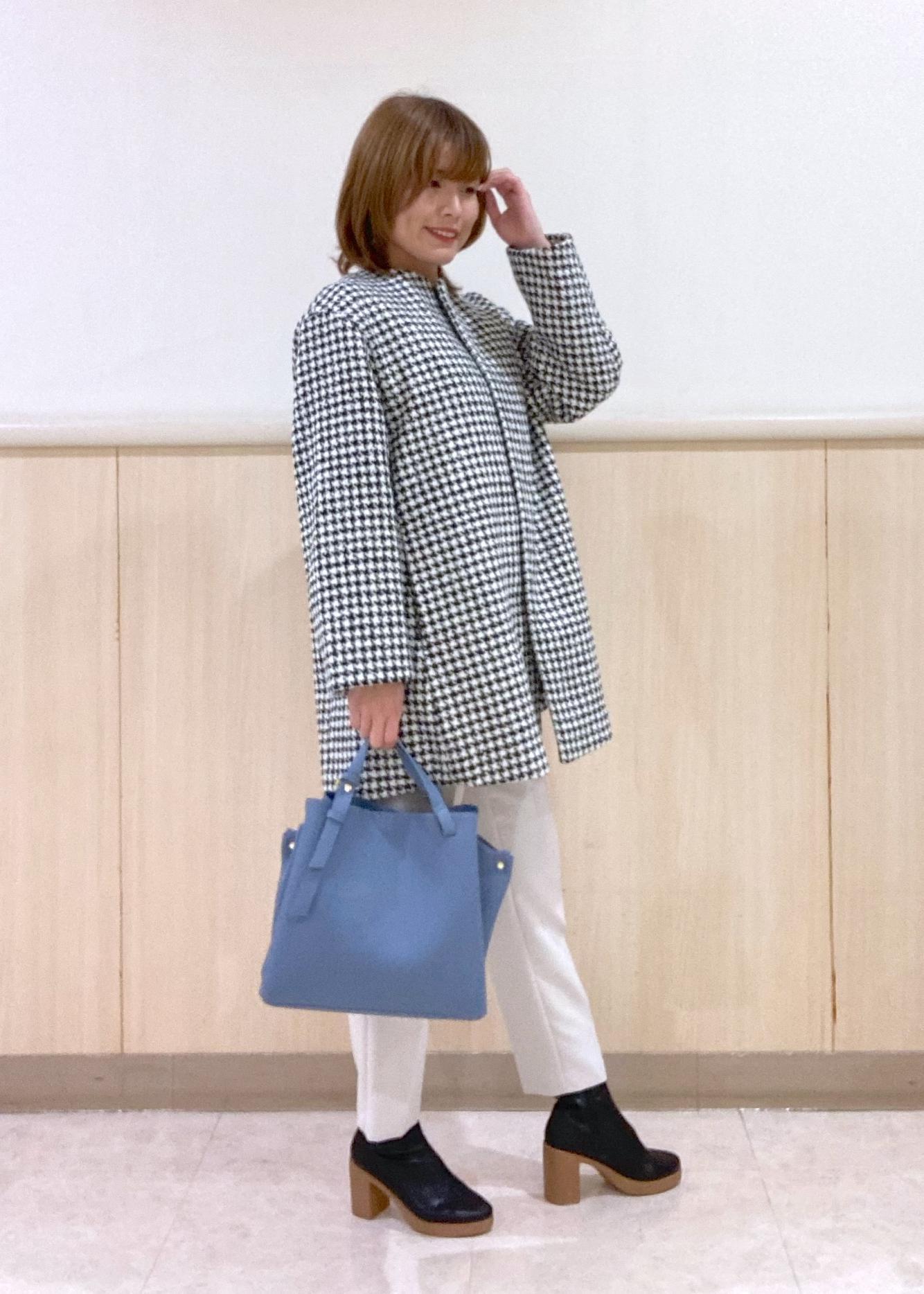 インナーにはブラウスを合わせてON/OFF兼用で着用できるコーディネートです!