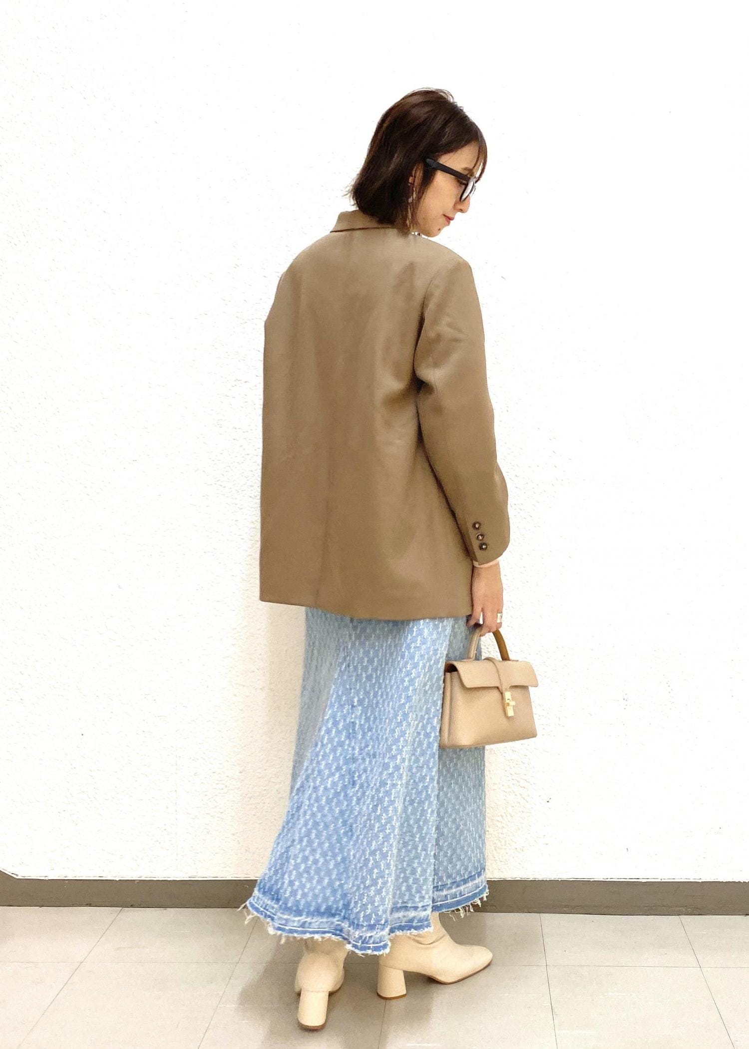 春に履きたいデニムスカートにジャケットを羽織ってキレイめカジュアルなスタイリングにしました!!