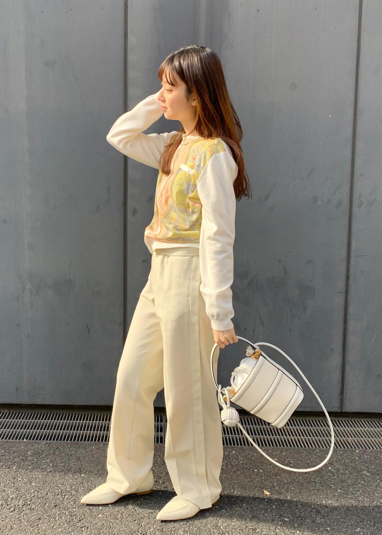 ハリのあるパンツと合わせる事でメリハリをつけました。