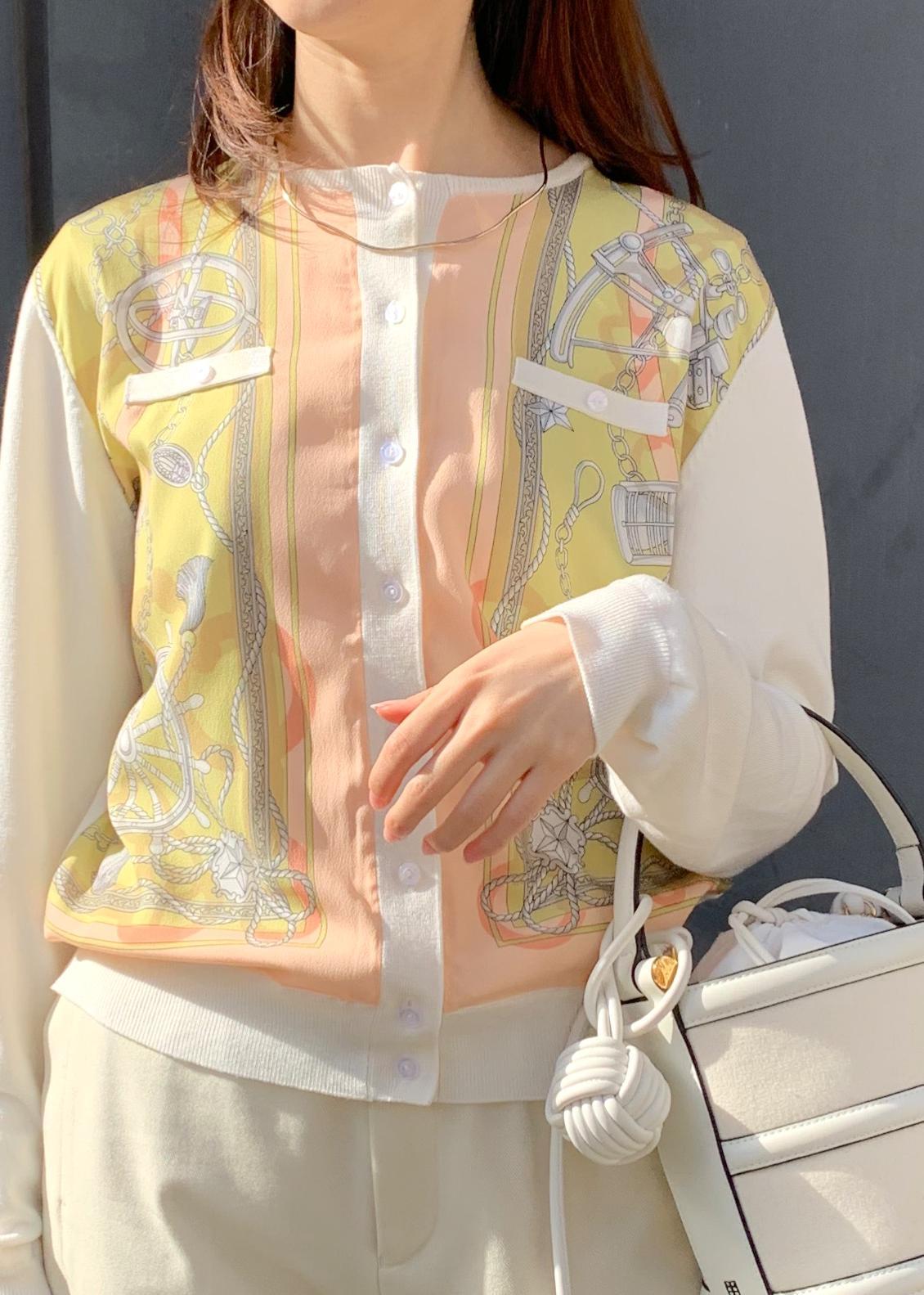 柄も印象的ですが、全体的に柔らかい雰囲気を纏えるのでとても品のあるカーディガンに仕上がっています。