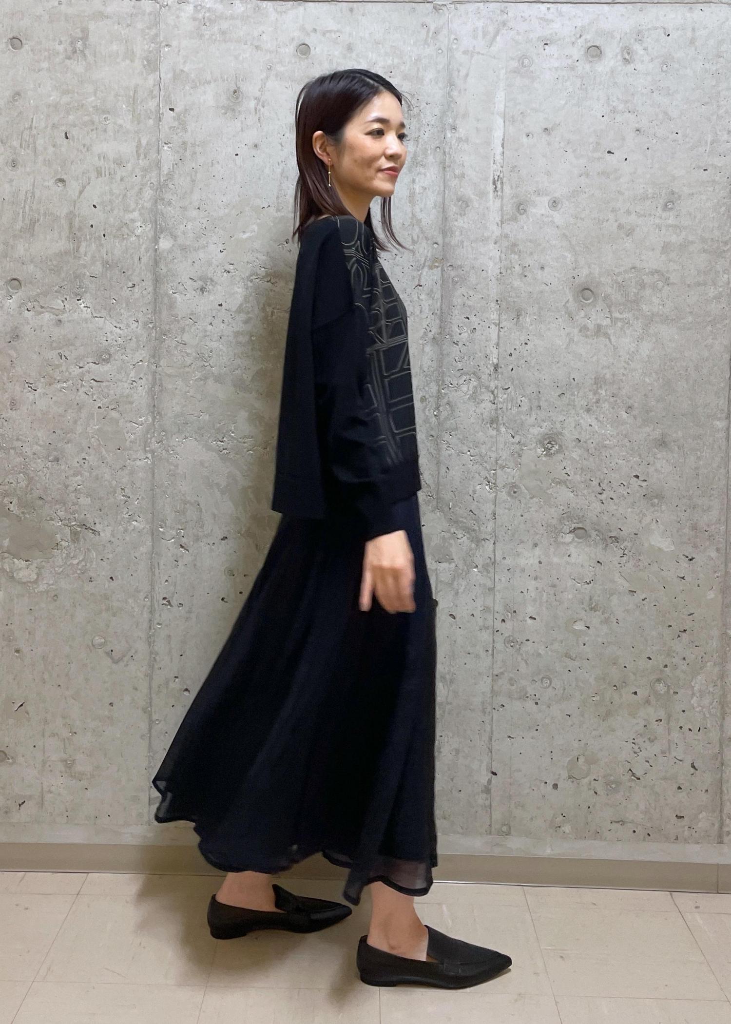 着丈はふくらはぎ下、足首がしっかり見える長さです。