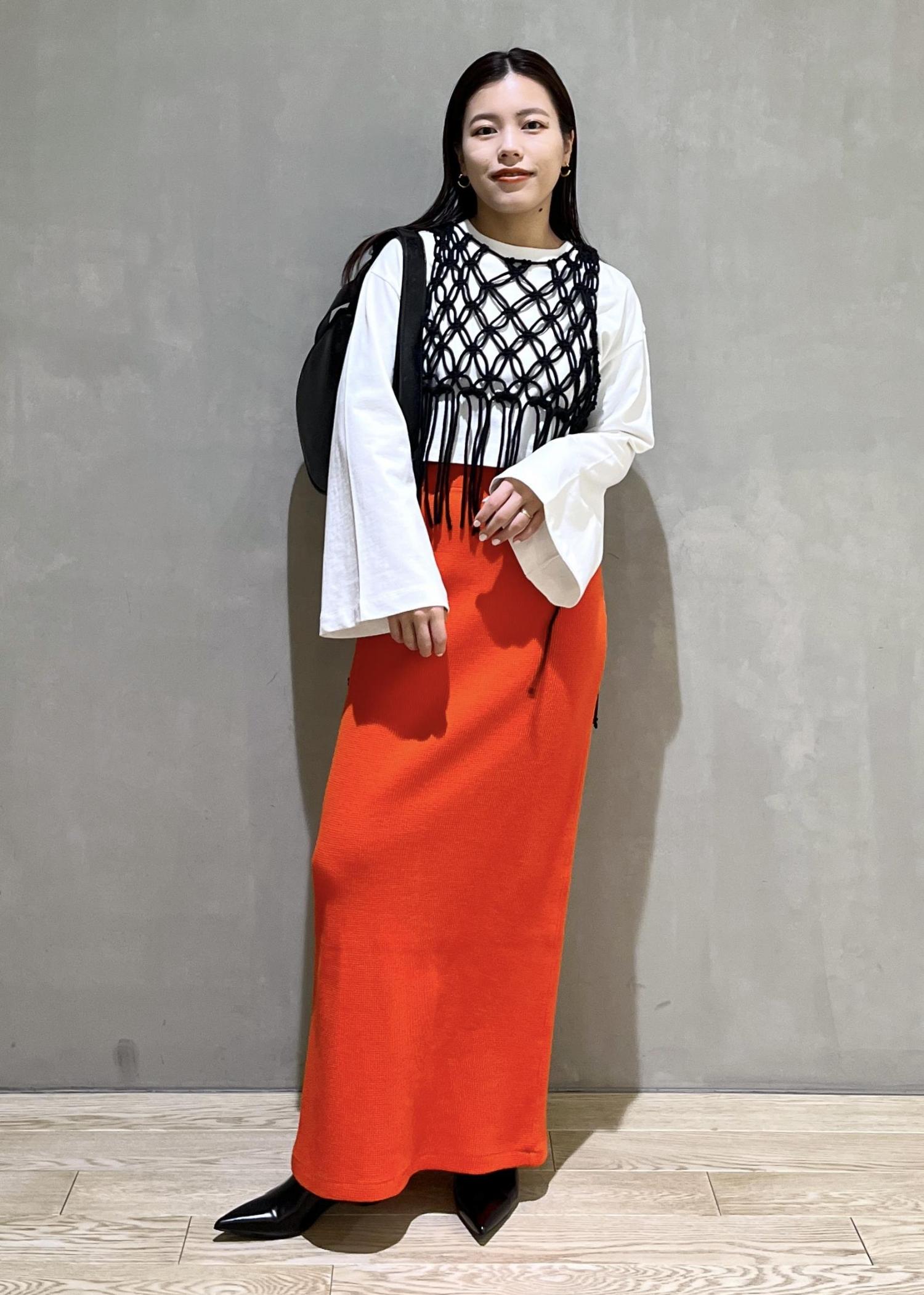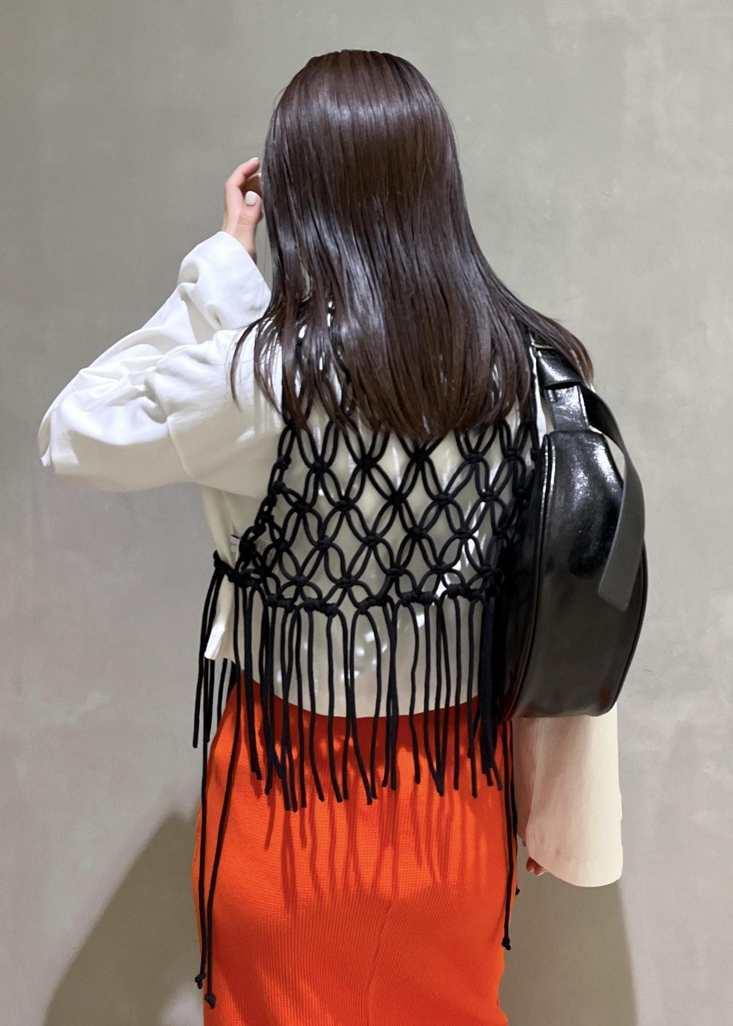 シャツやニットにレイヤードしたり、ジャケットの下に合わせたりと万能なアイテムです!