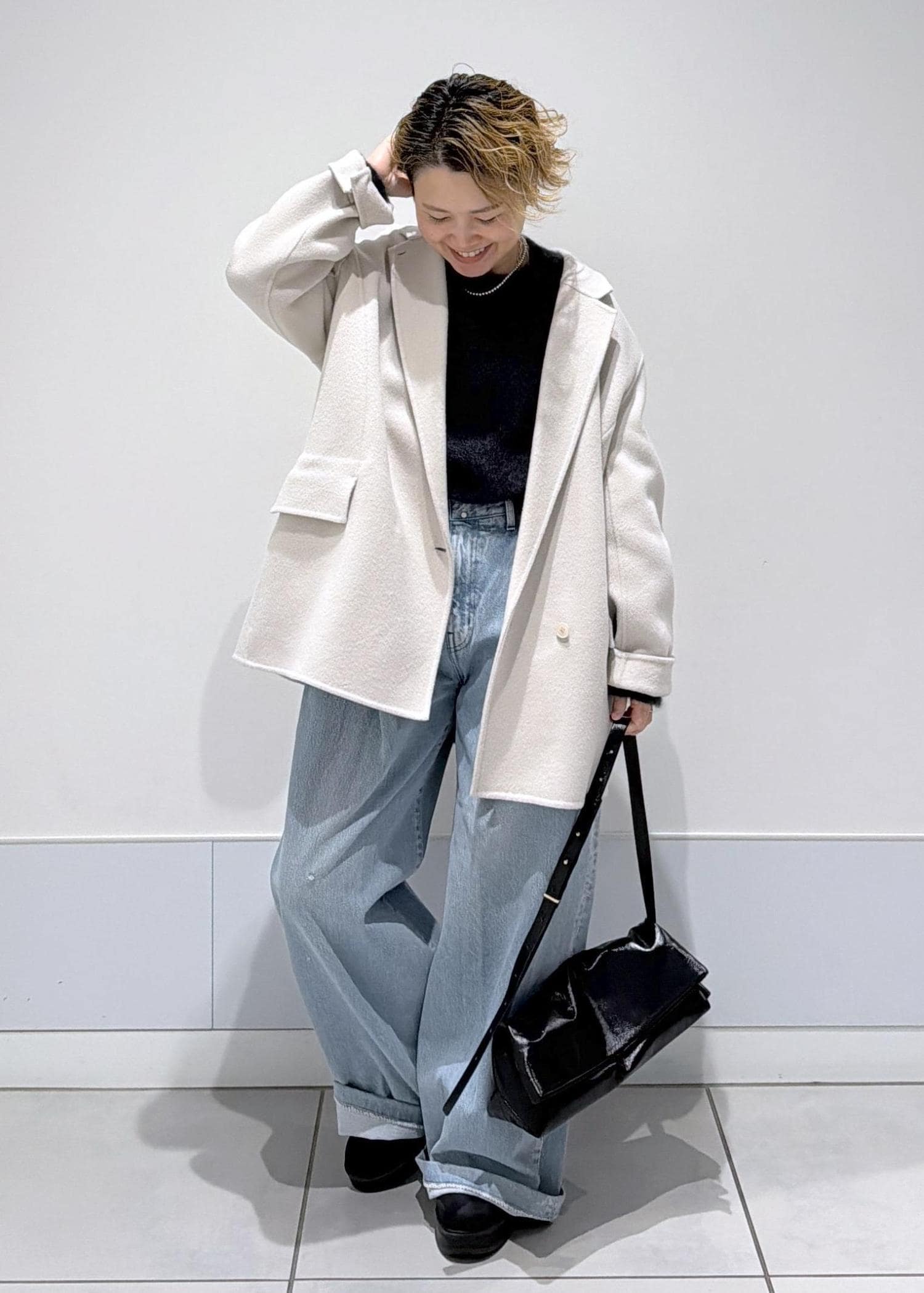 シンプルなスタイルにサラッと羽織ればぐっとおしゃれな印象に◎
