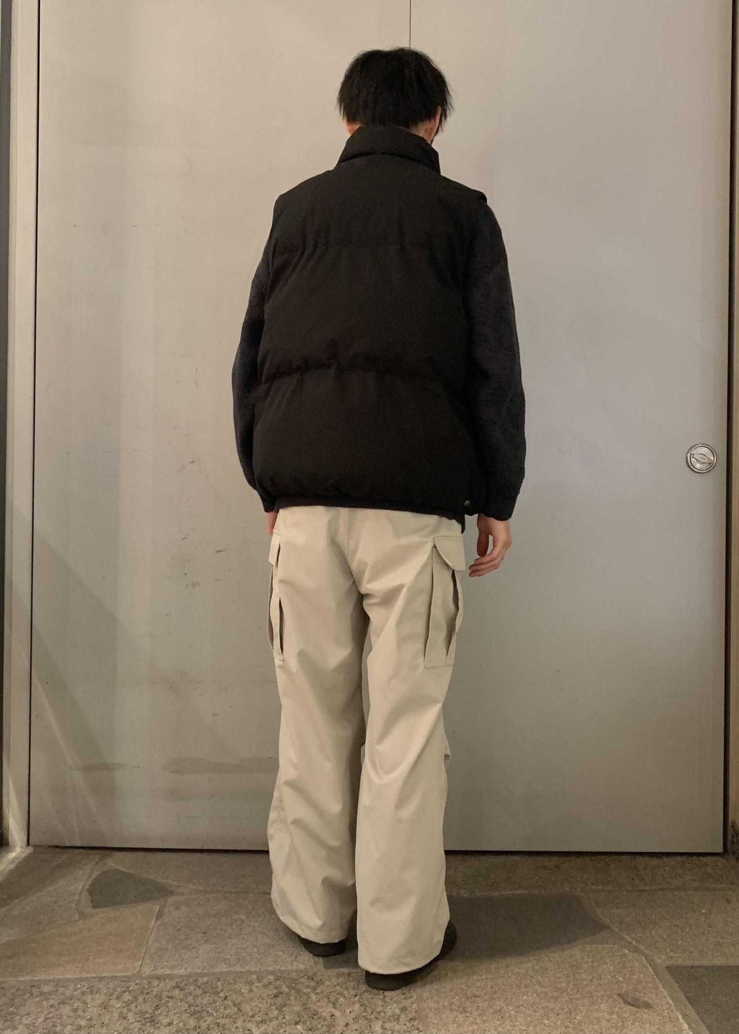 レイヤードスタイルを楽しめるファイバーダウンベストです。シンプルなスタンド型で上までファスナーを止めても苦しくない絶妙なフィット感です。単品でも分厚いスウェットに合わせても適度なボリューム感で今っぽいシルエットです。