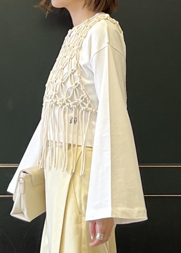 トップス・ボトムにプラスはもちろん、ワンピースの上からサッとレイヤードしても可愛いだろうなぁ…と想像が膨らませては心躍る一着。
