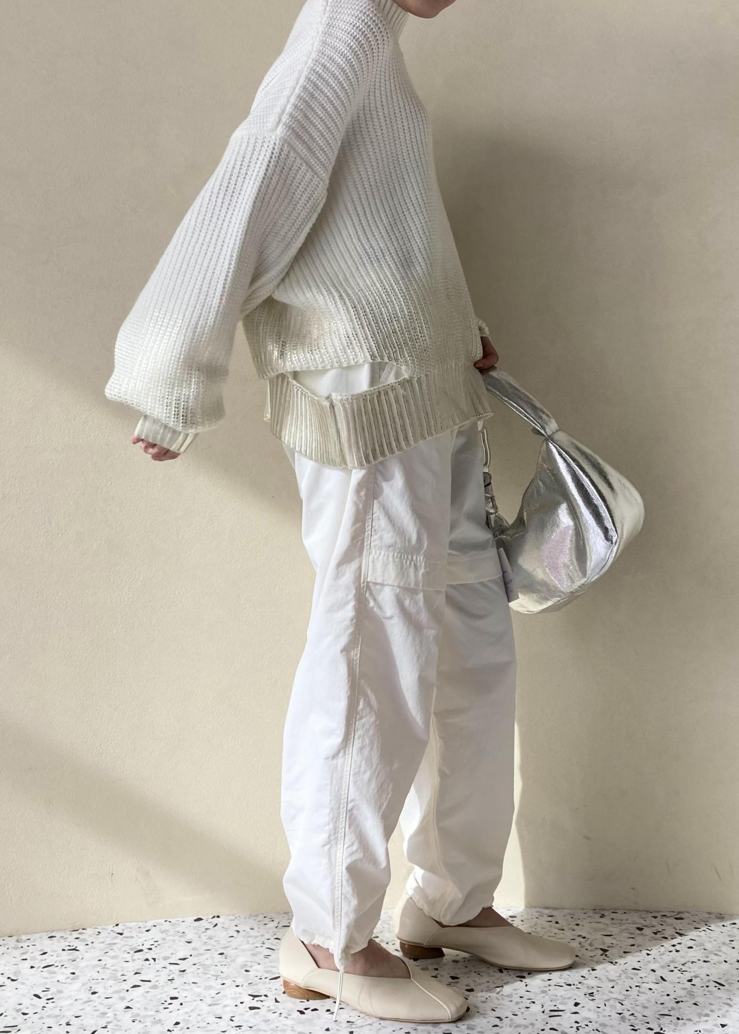 チクチク感無く毛足のないニットなので、春に向けて合わせやすい1着です。 -