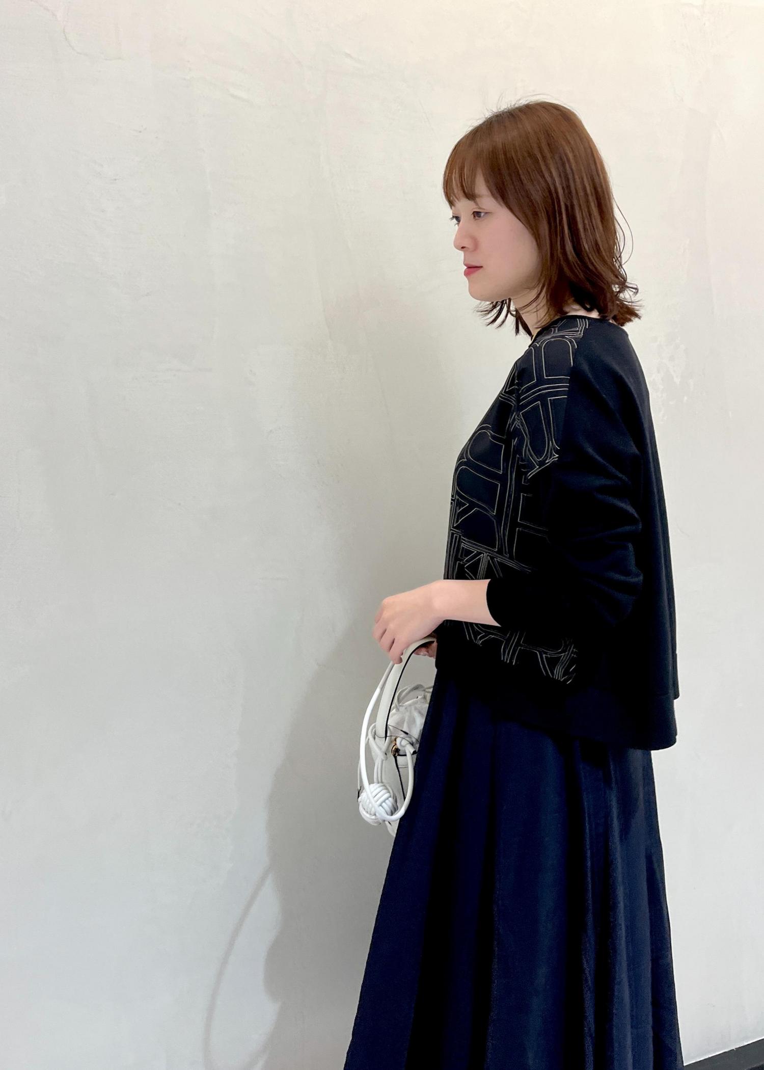 ロペオリジナルのモノグラム柄トップスを使った、綺麗めモノトーンコーディネートです!