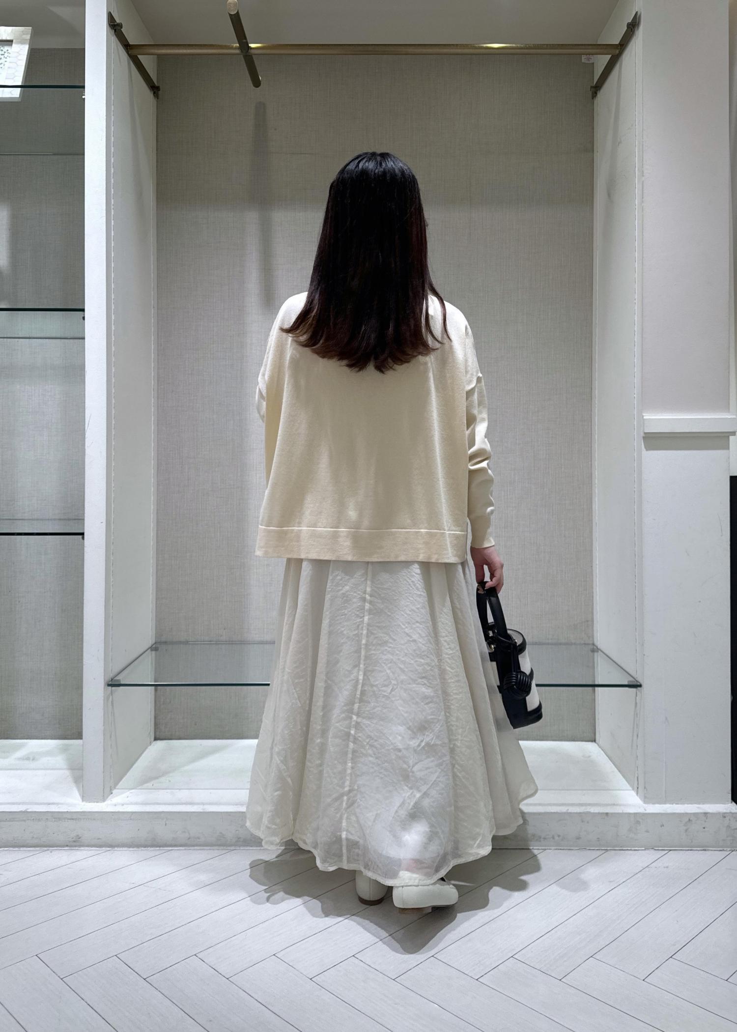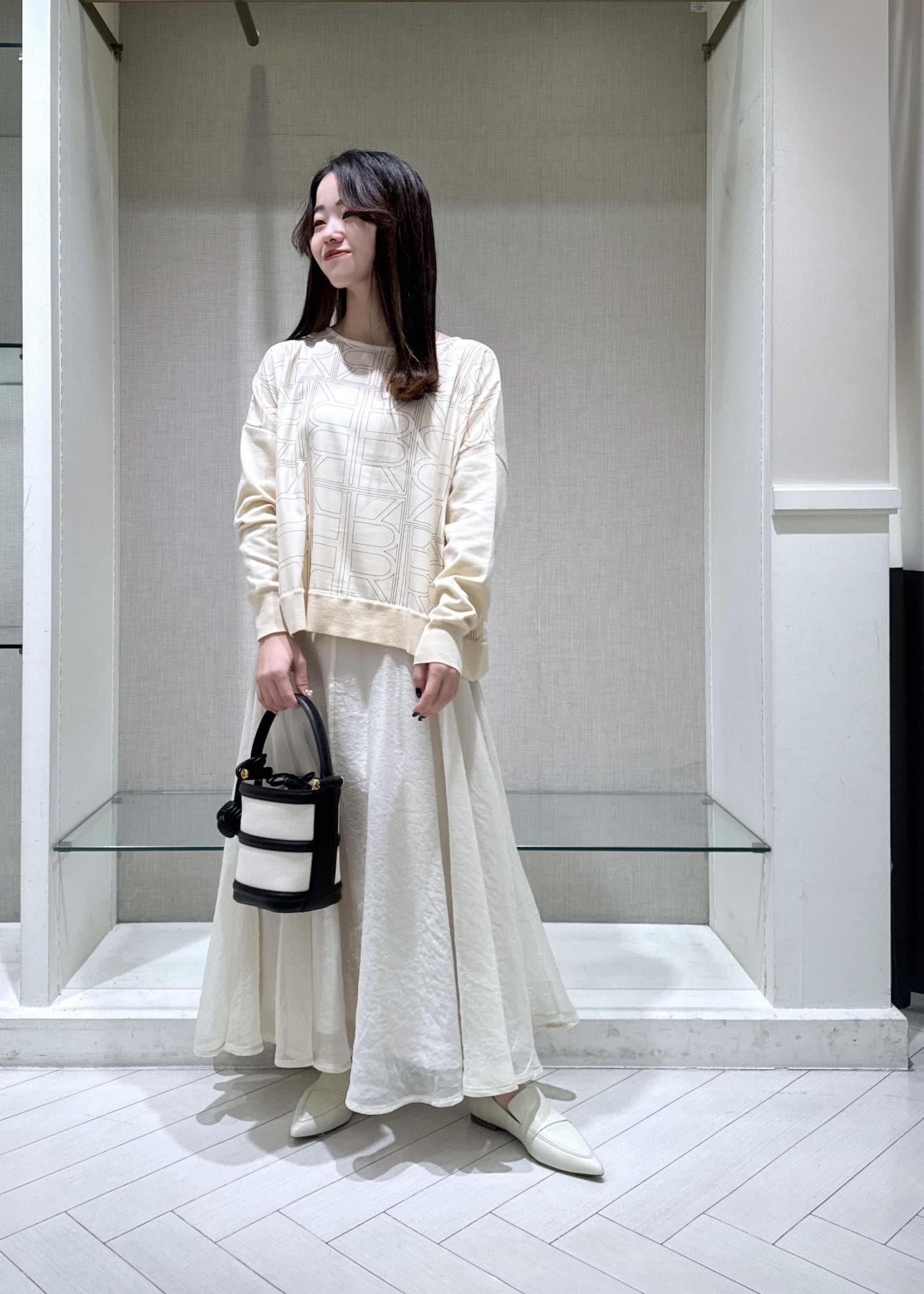 今季おすすめのモノグラムシリーズを着用してみました♩モノグラムの程よい存在感を主役にして、フレアスカートと合わせてフェミニンな春コーデにしました。