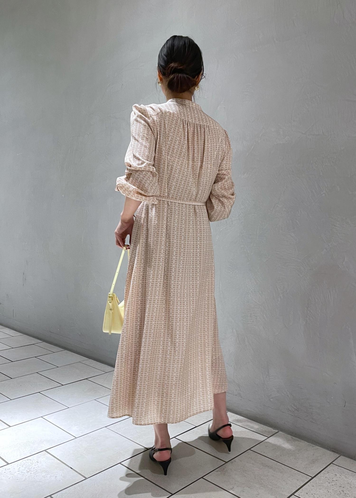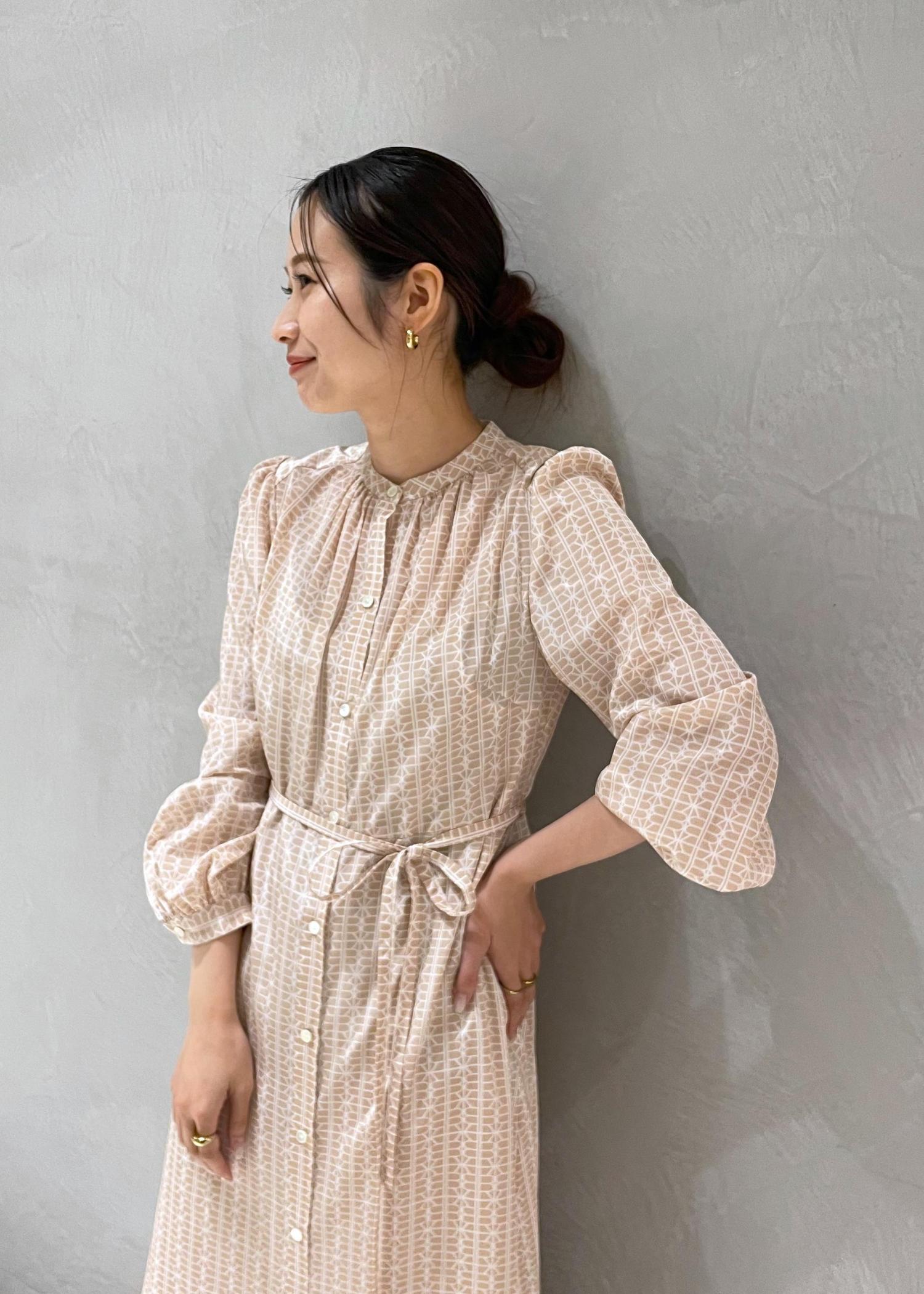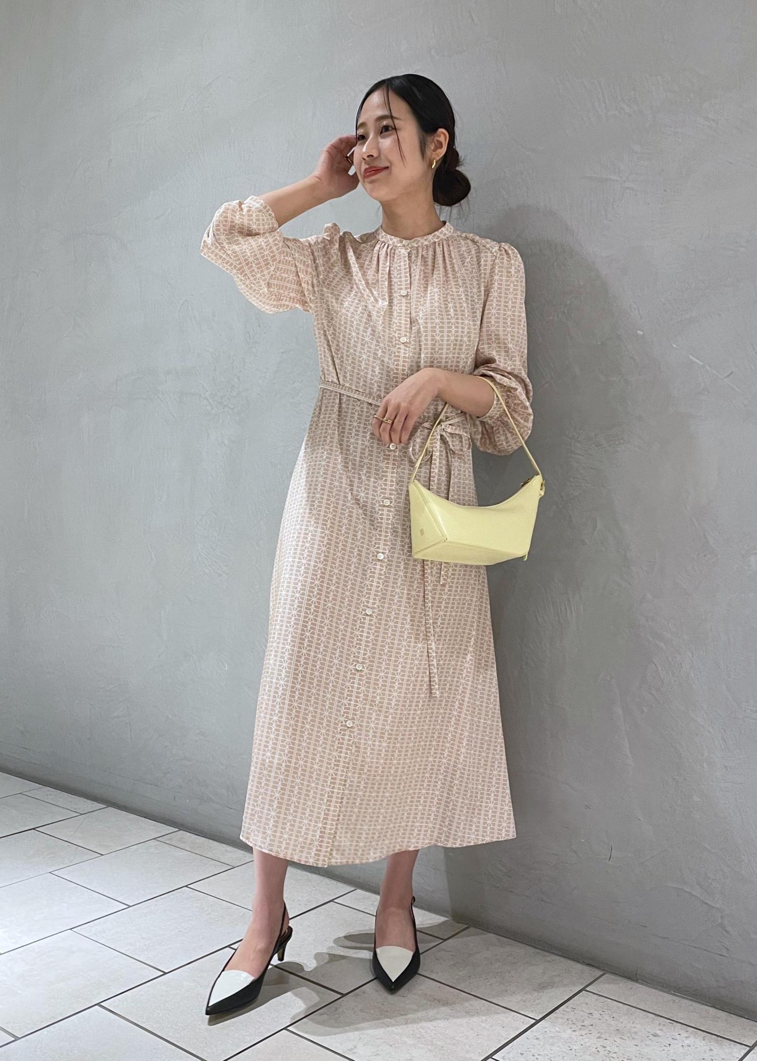 柔らかなカラーが上品で女性らしく着るだけで華やかなワンピースはロペのモノグラムがプリントされています。