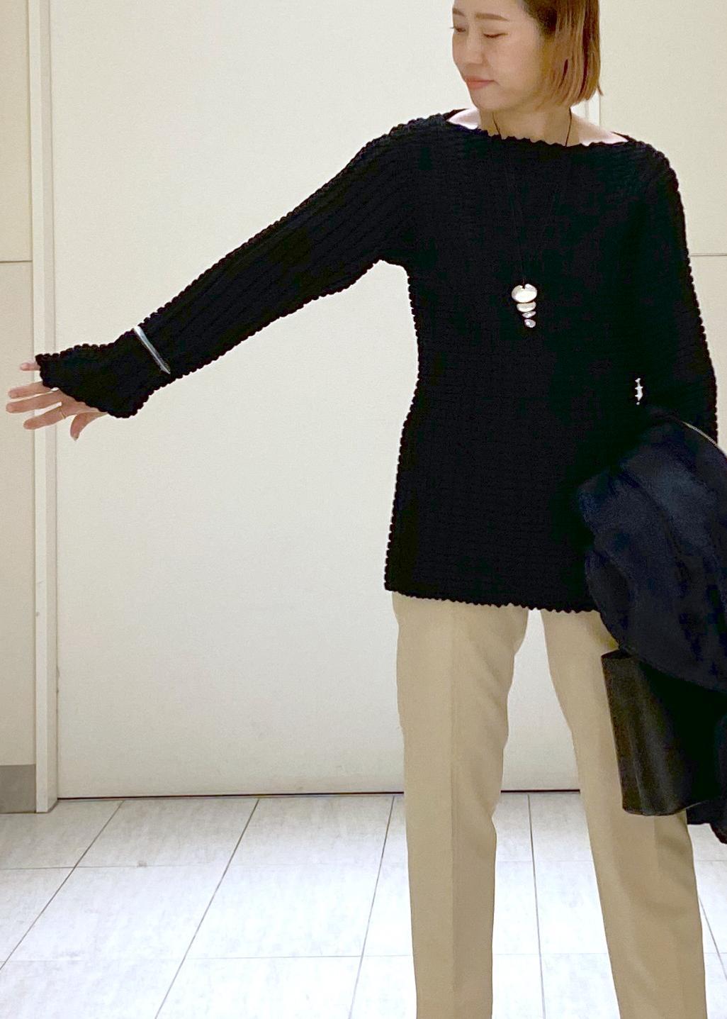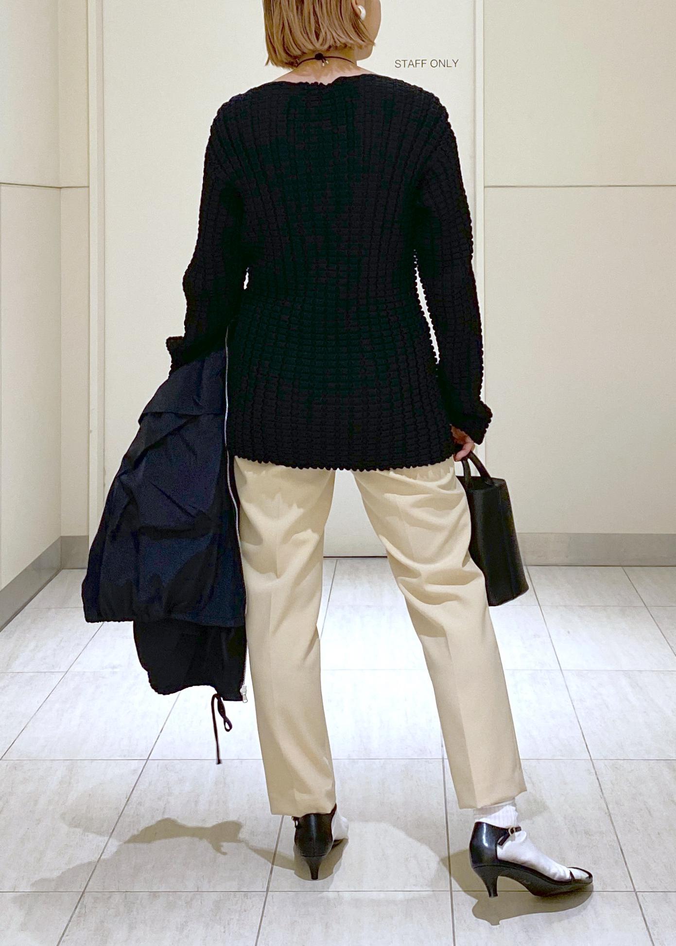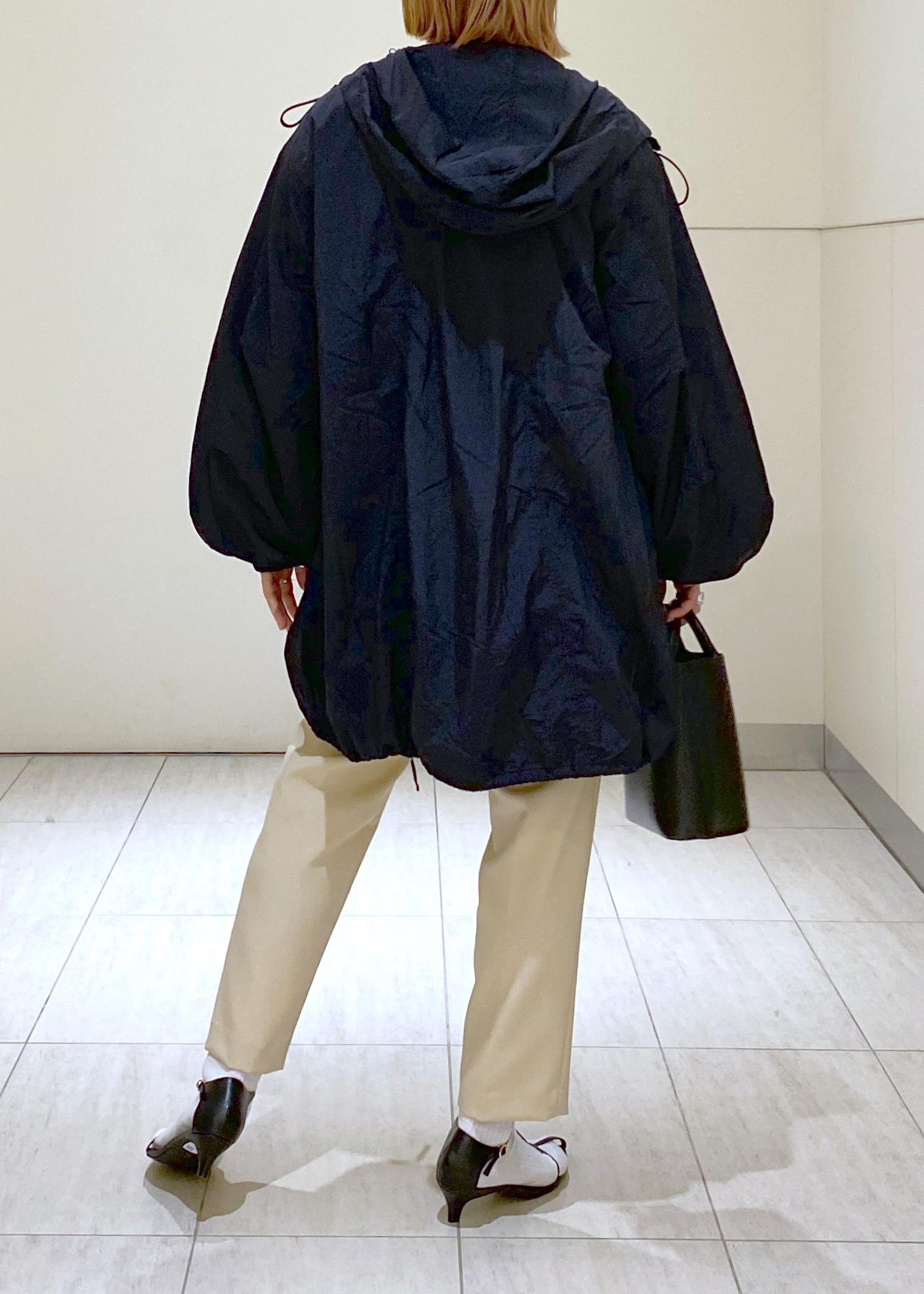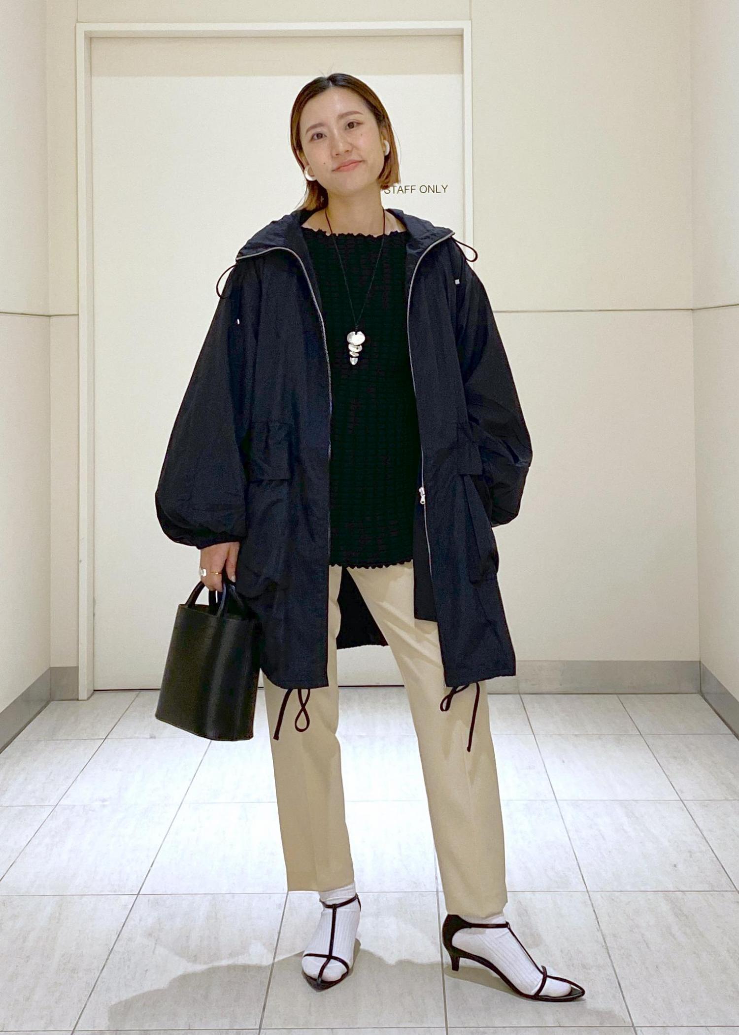 ヒップまである着丈なので、あえてコンパクトなボトムスと合わせています。