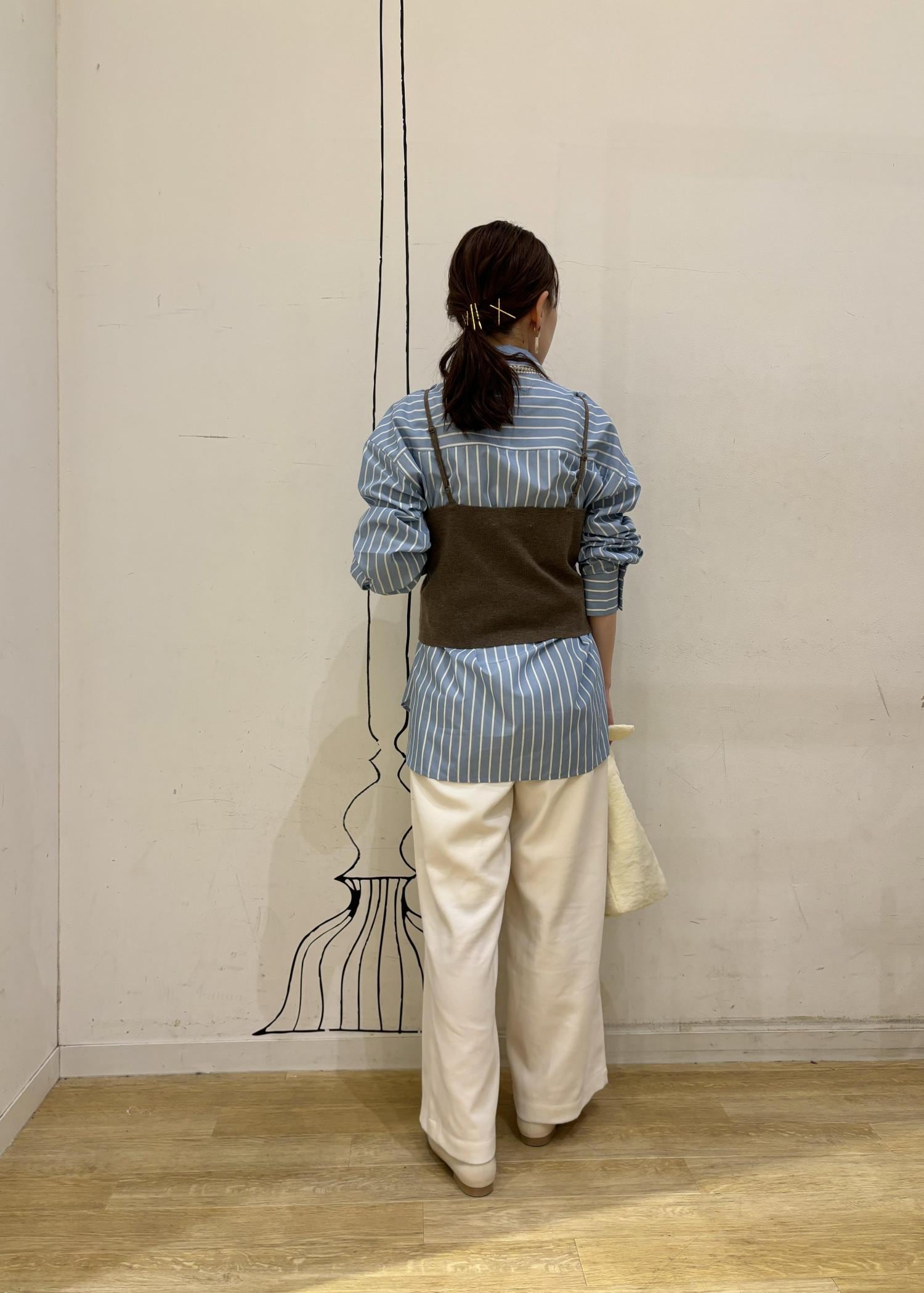 シャーリング素材が今年らしくおしゃれで、カジュアルコーデにおすすめです。