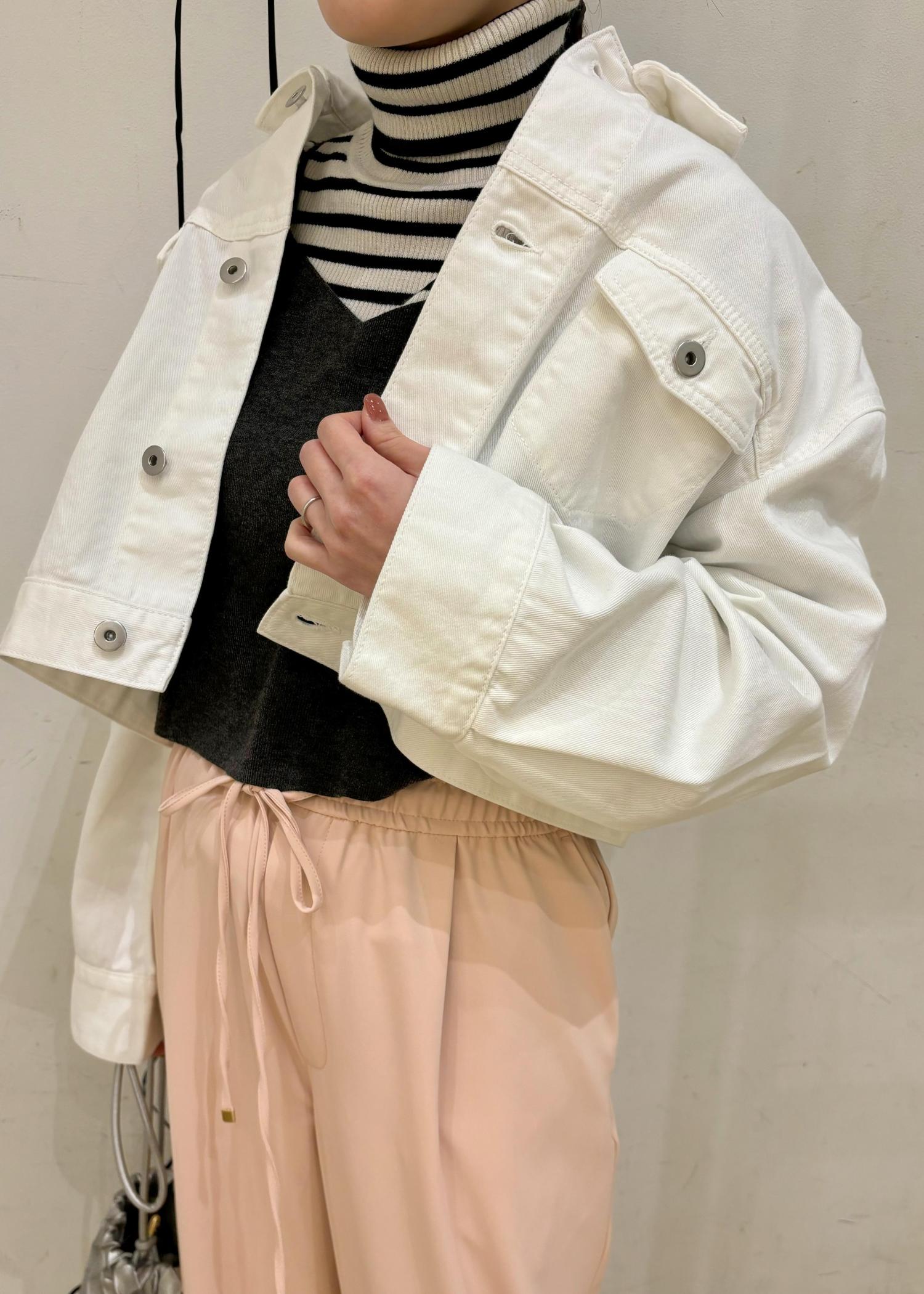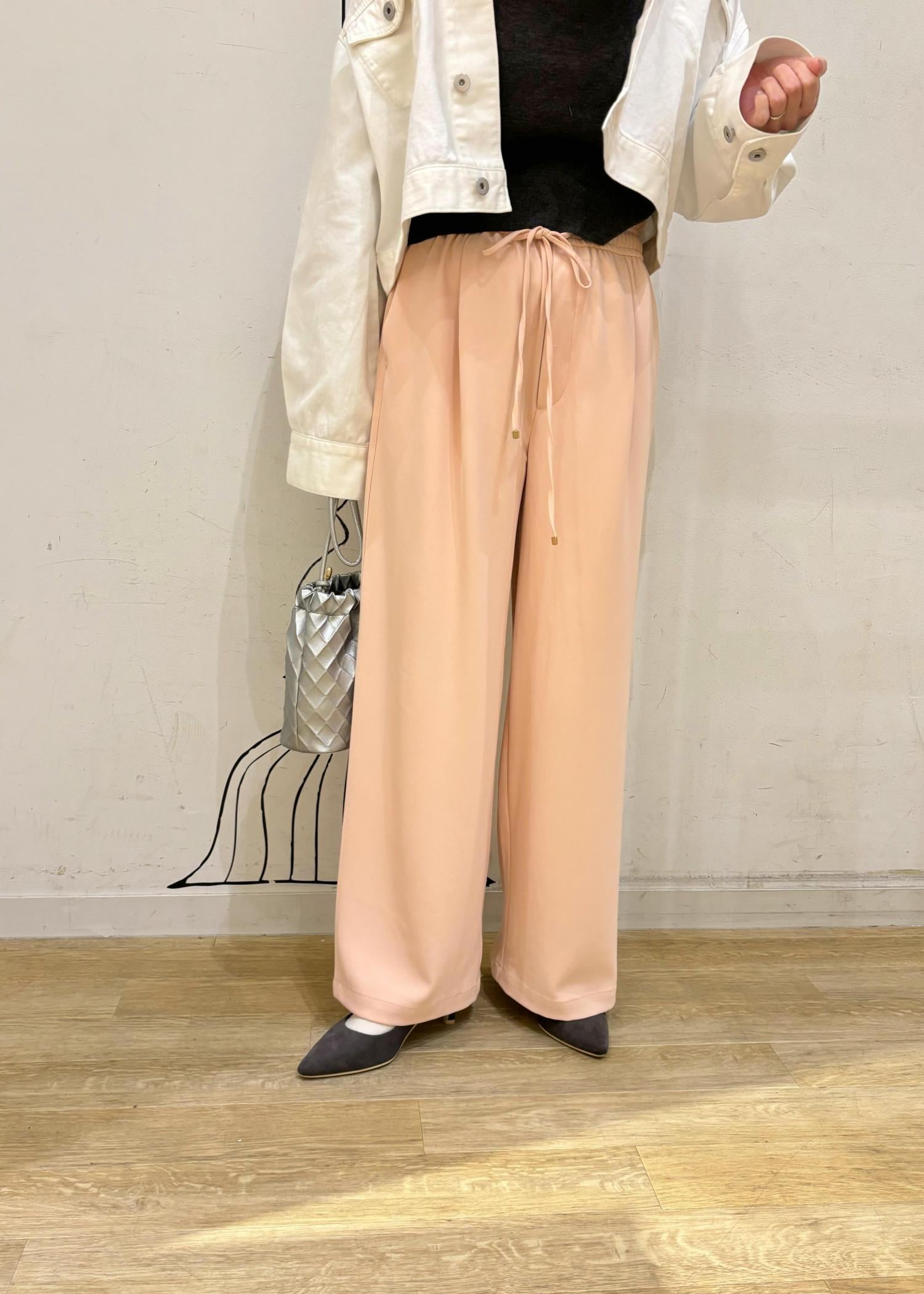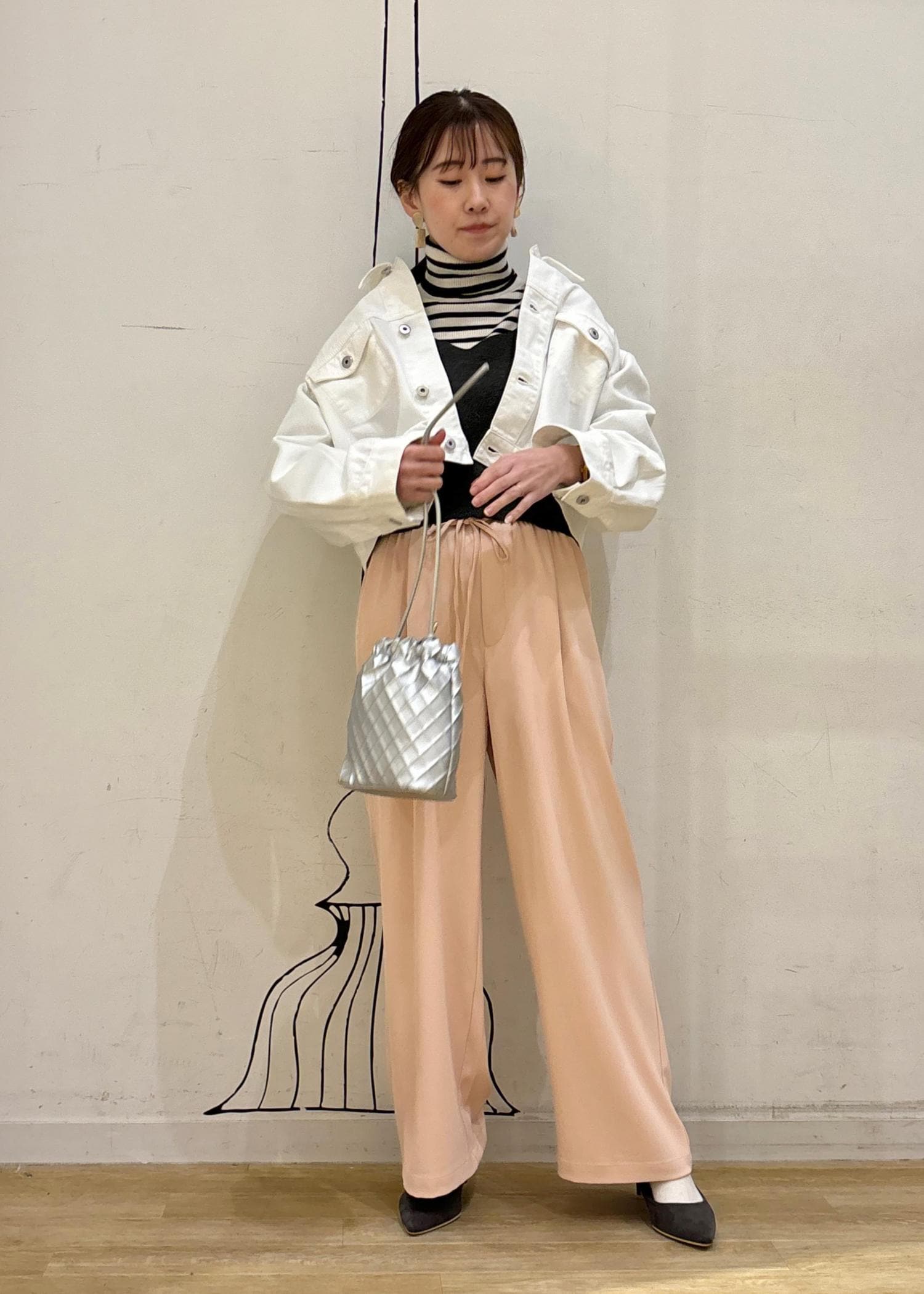 ピンクのワイドパンツを主役にコーデを組みました。まだ寒い時期なのでタートルネックニットに春カラーを足すと春を先取りしやすいです。