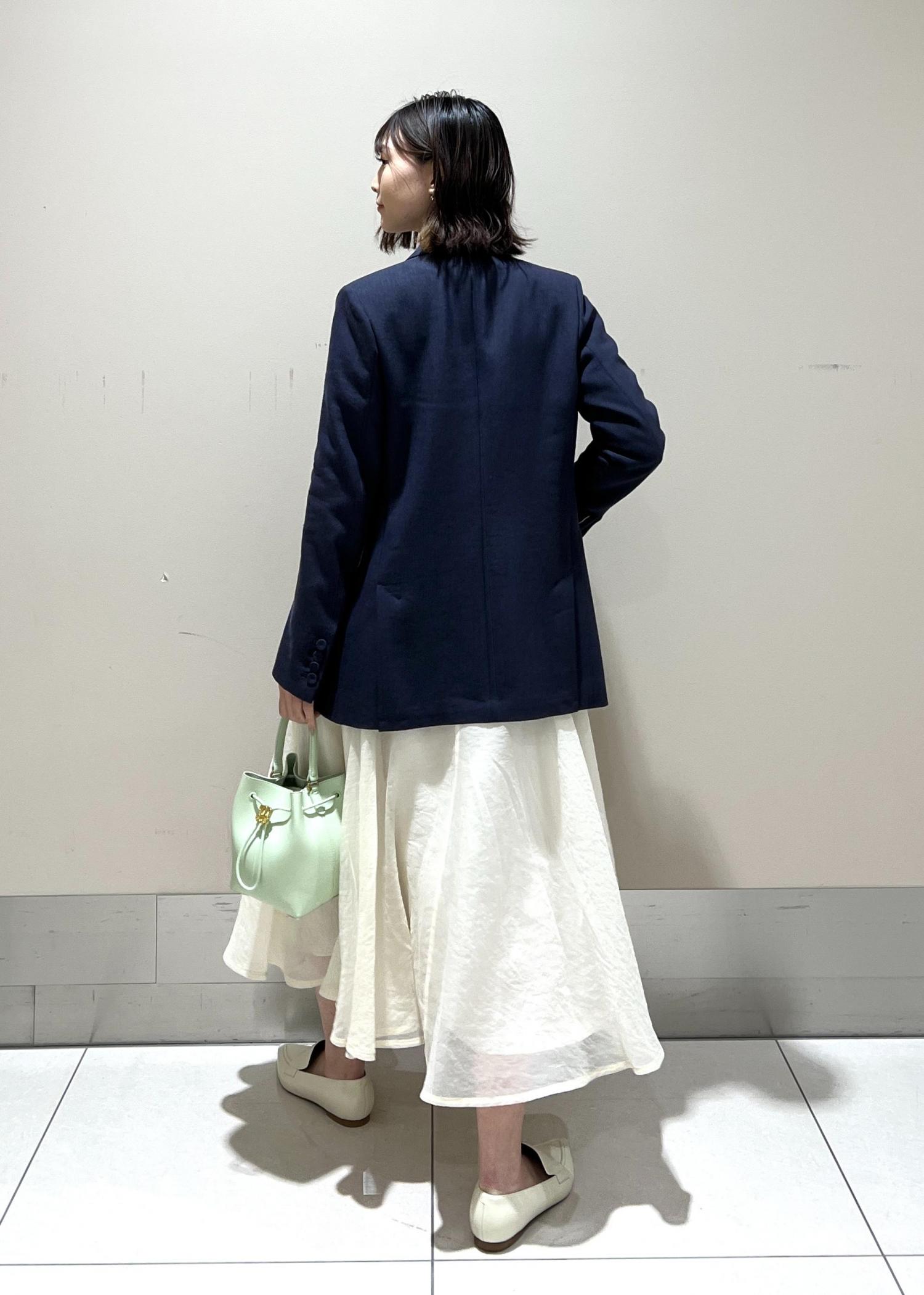 ジャケットは着丈長めですが、スッキリシルエットなので、