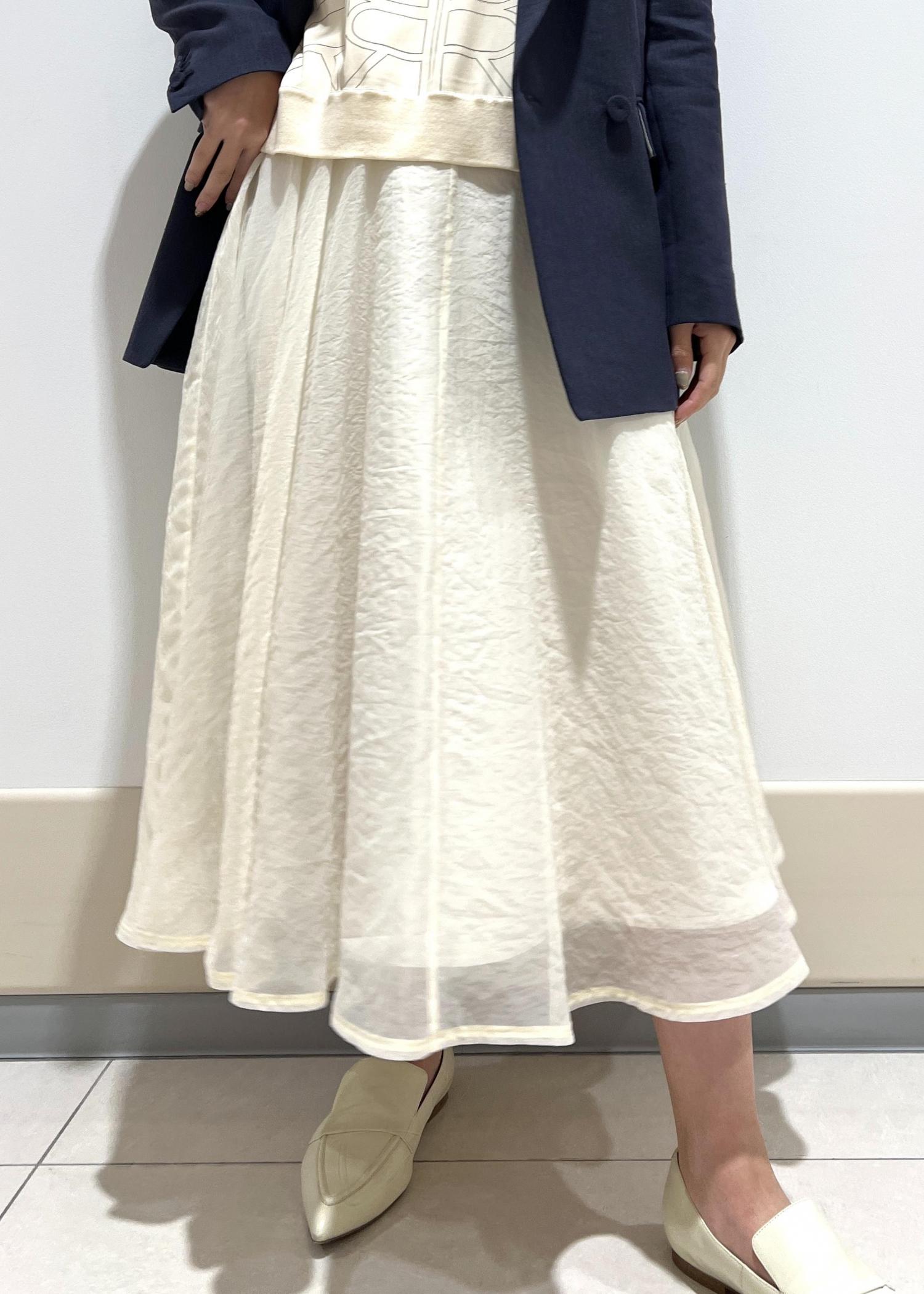 フレアの甘めスカートを合わせ、休日のカジュアルフェミニンスタイリングの完成⭐︎