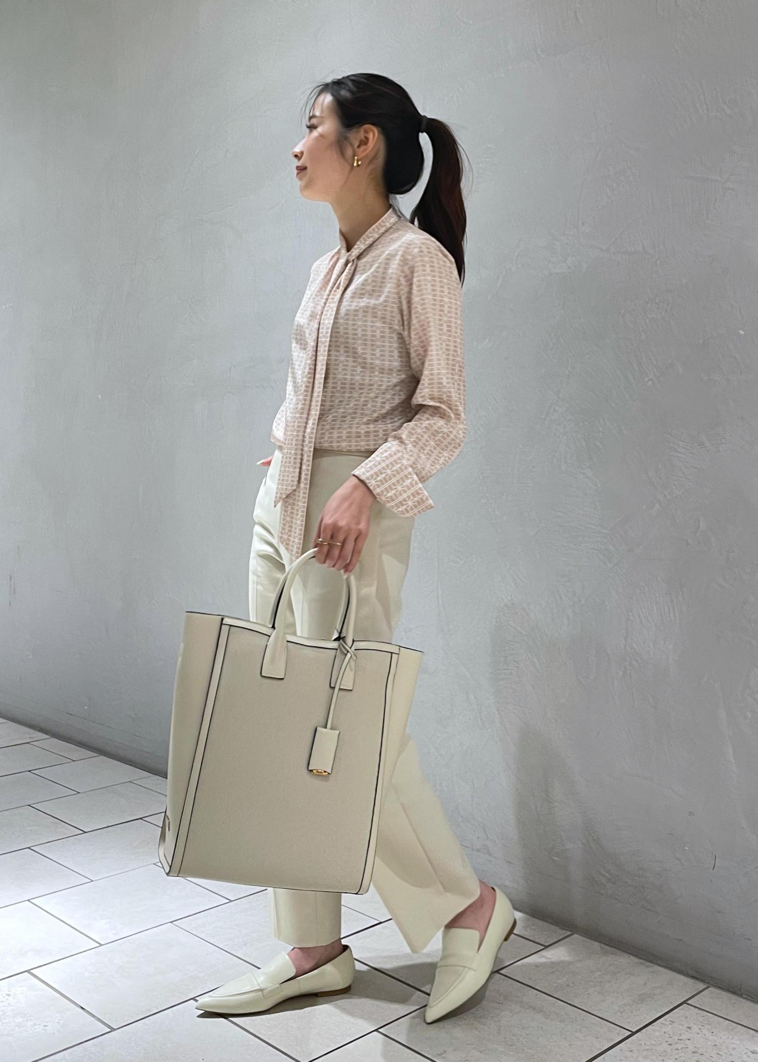 ブラウス以外をホワイトでまとめることでブラウスのカラーと柄が引き立つコーディネートに♪