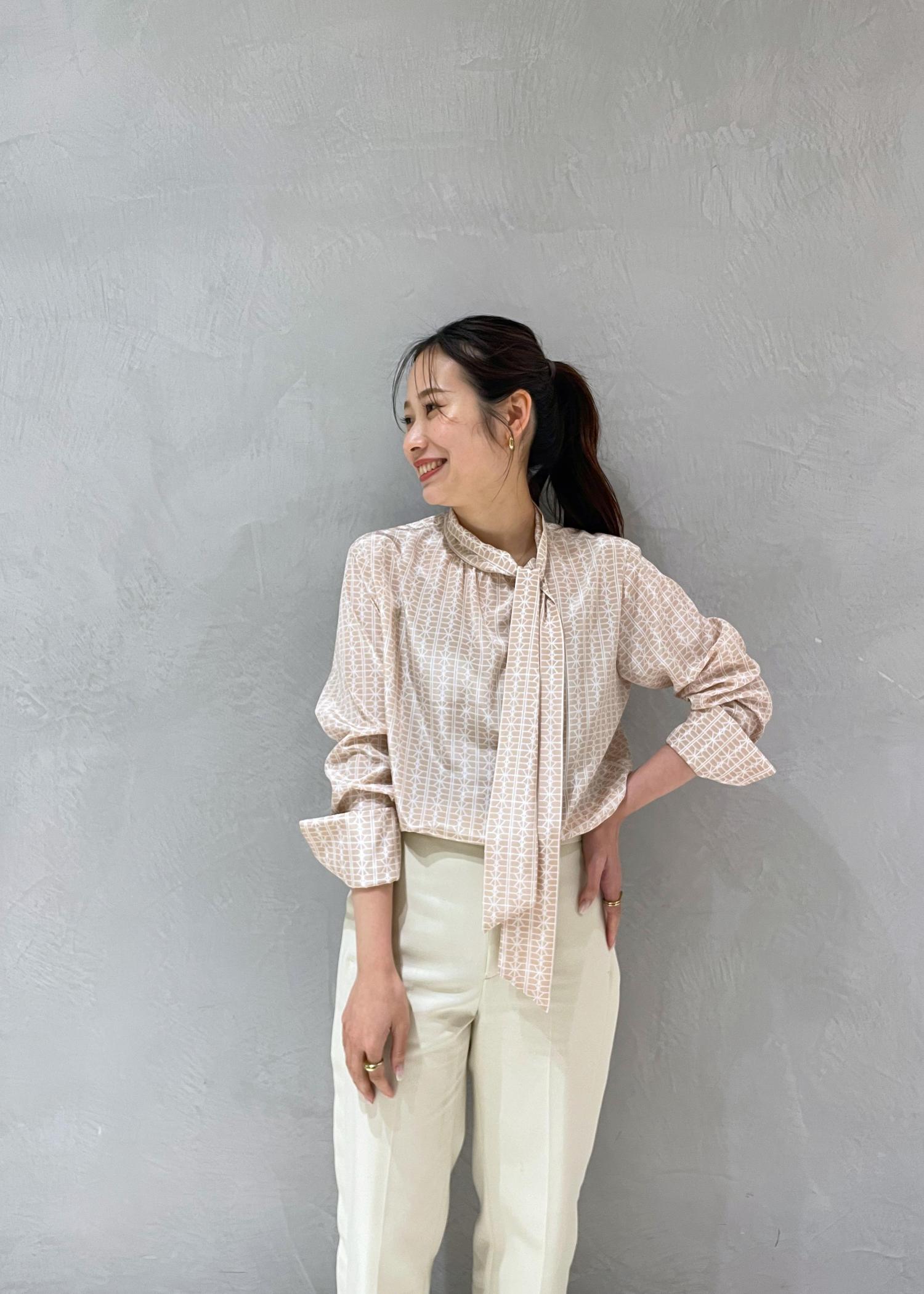 アウトレットROPÉ【雑誌掲載】モノグラムプリントブラウス/無地ボウタイブラウスピンク系 / F¥10,560レビュー161cmでフリーサイズ着用。