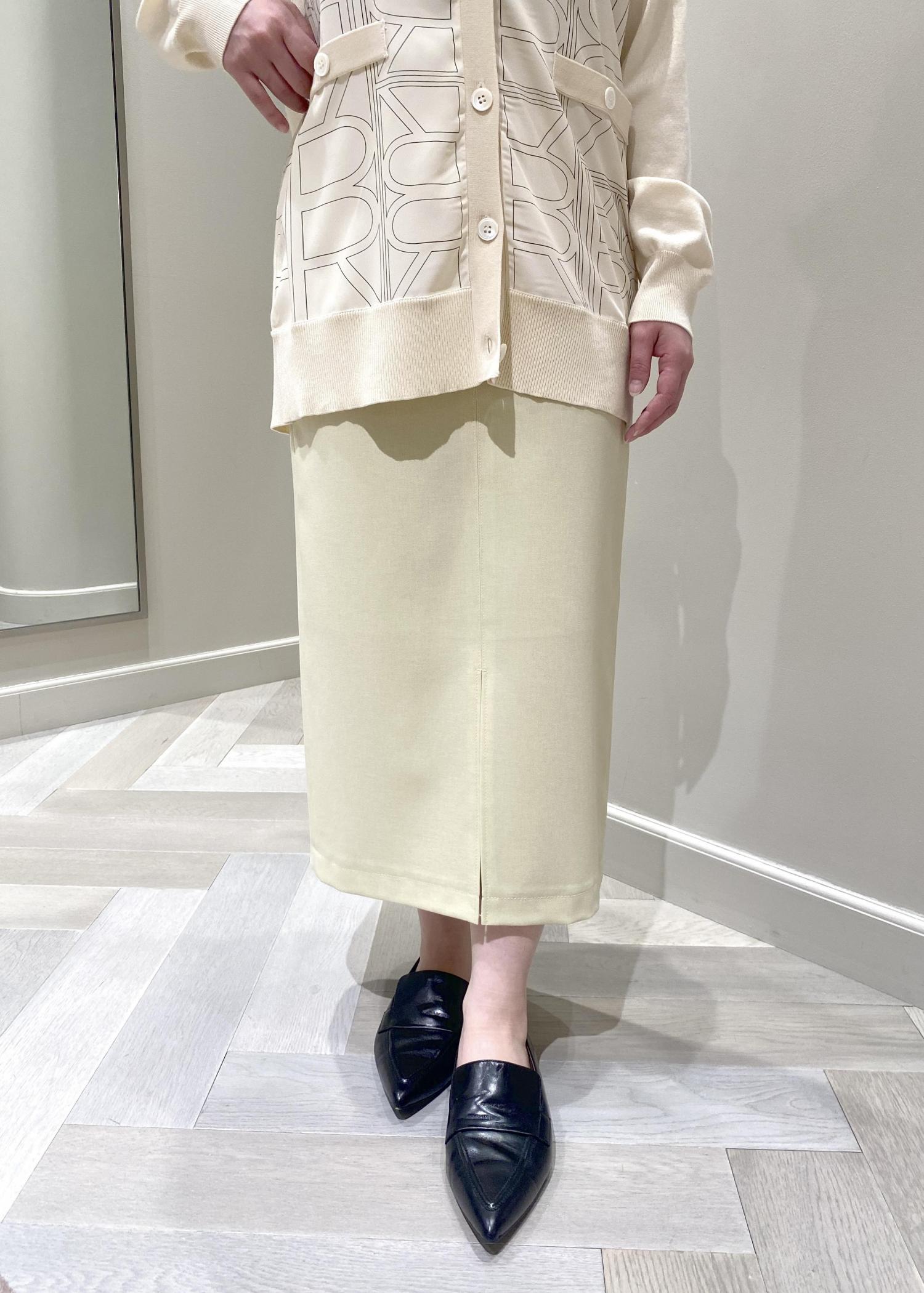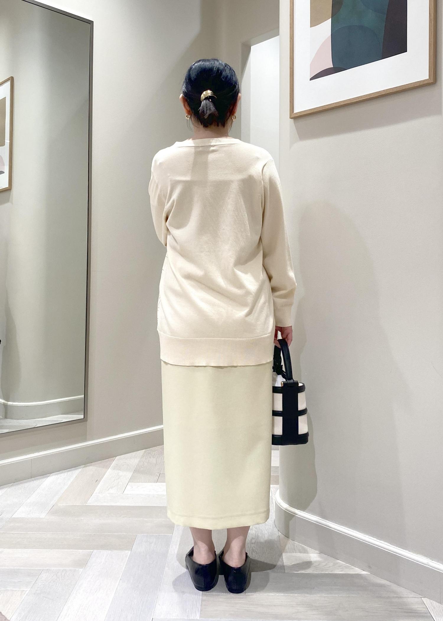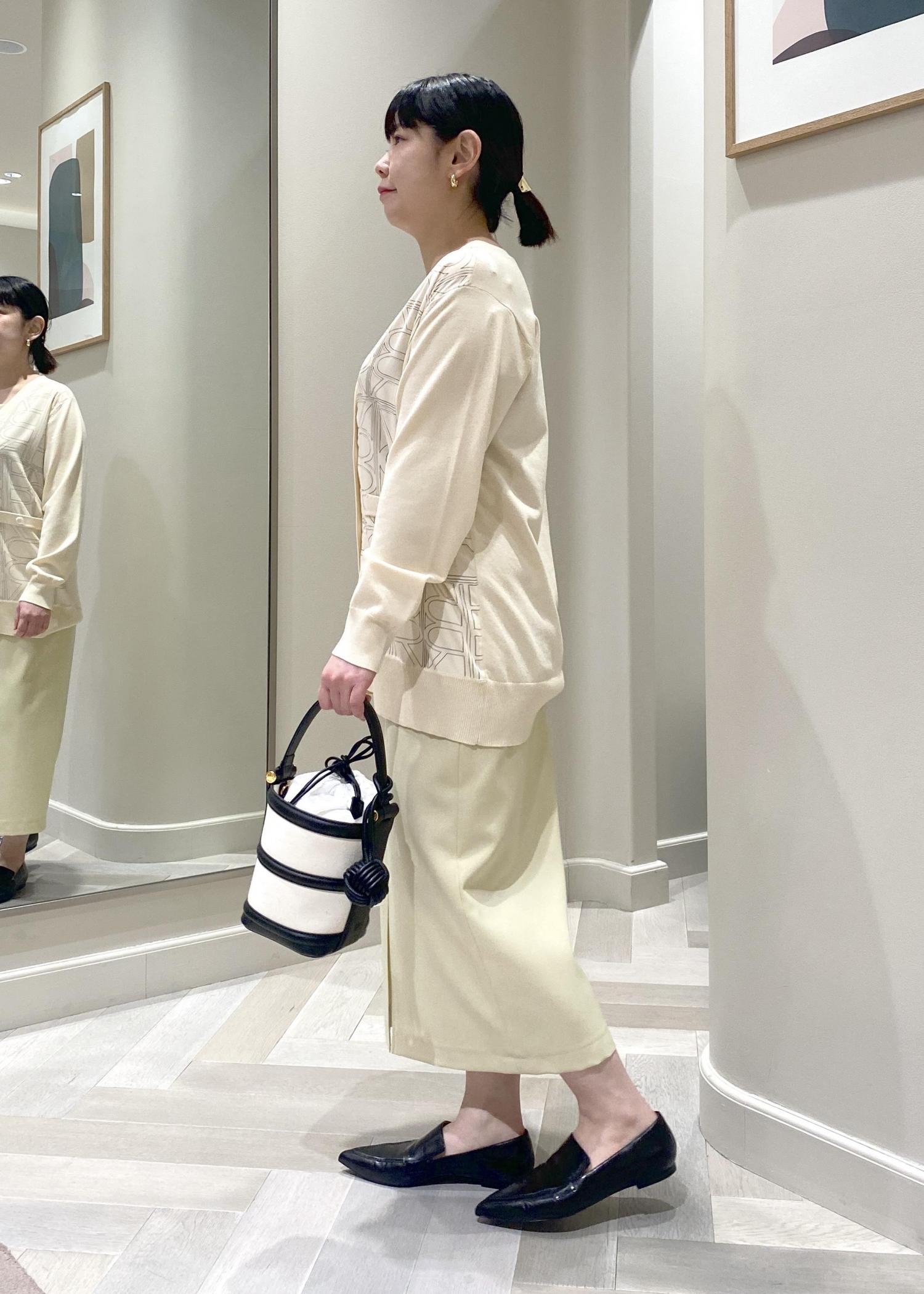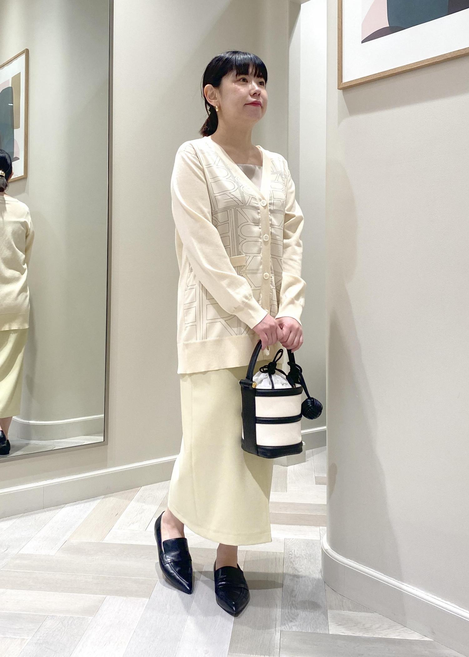 ツヤ感が美しいモノグラムカーディガンを合わせました!