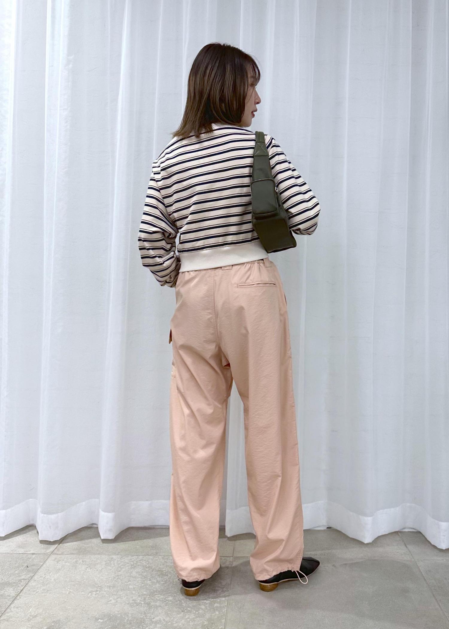 切り込みデザインがポイントのカーゴパンツは履くだけでお洒落に。ウエスト部分はベルトで調節可能です◎