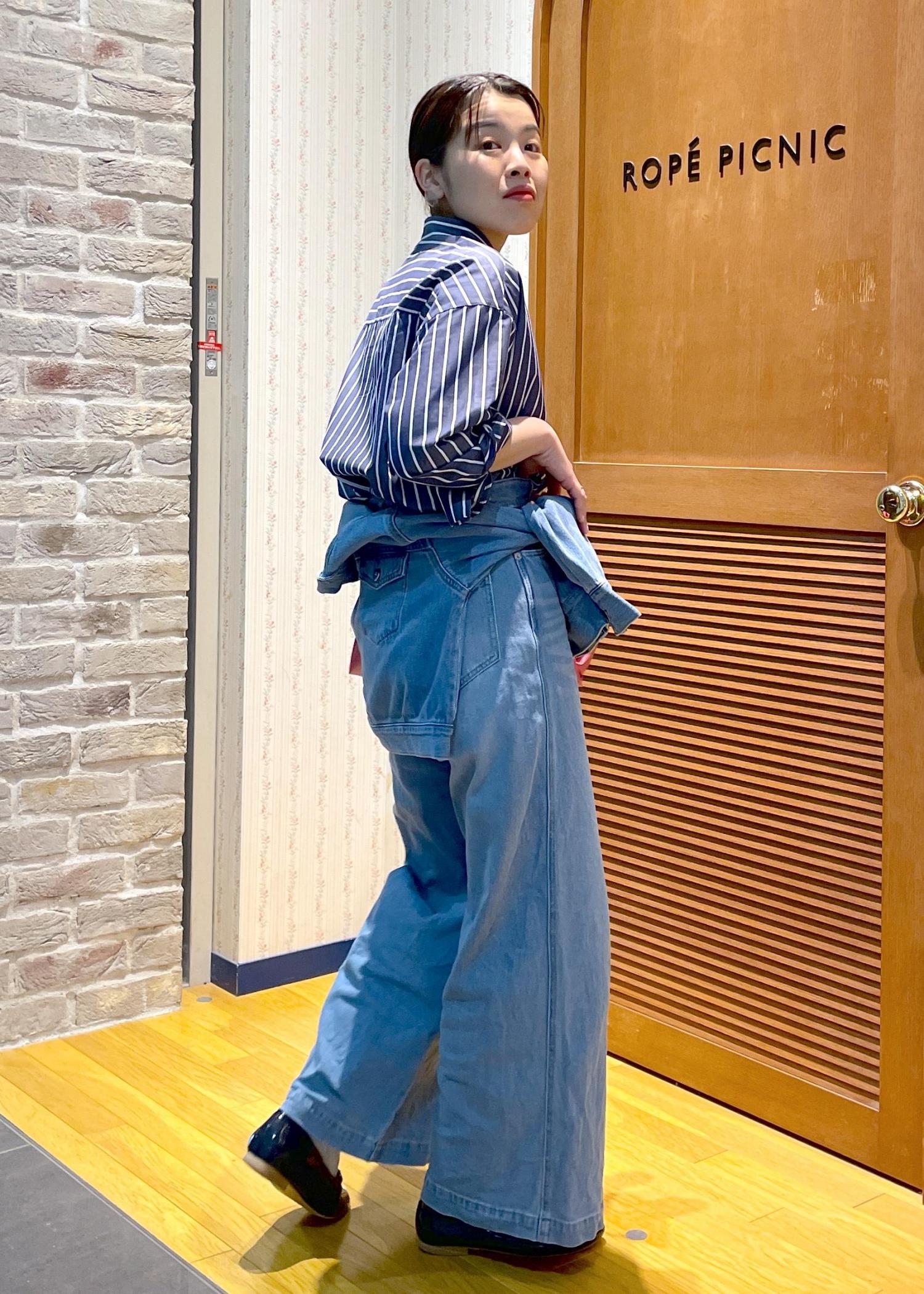デニムのワイドパンツにデニムジャケットを巻いたデニムonデニムコーデです!