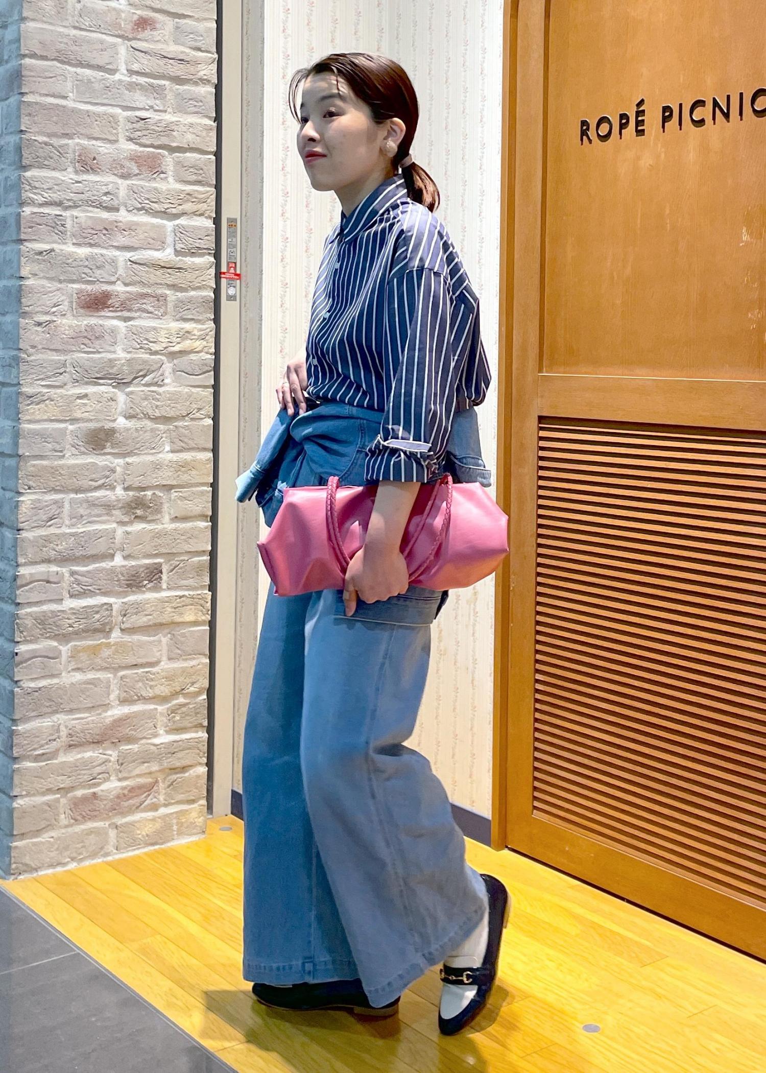 シャツのブルーで統一して、ポイントにピンクのバッグを合わせました!