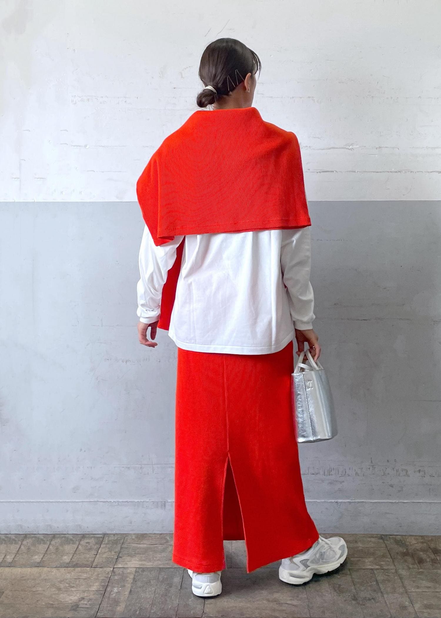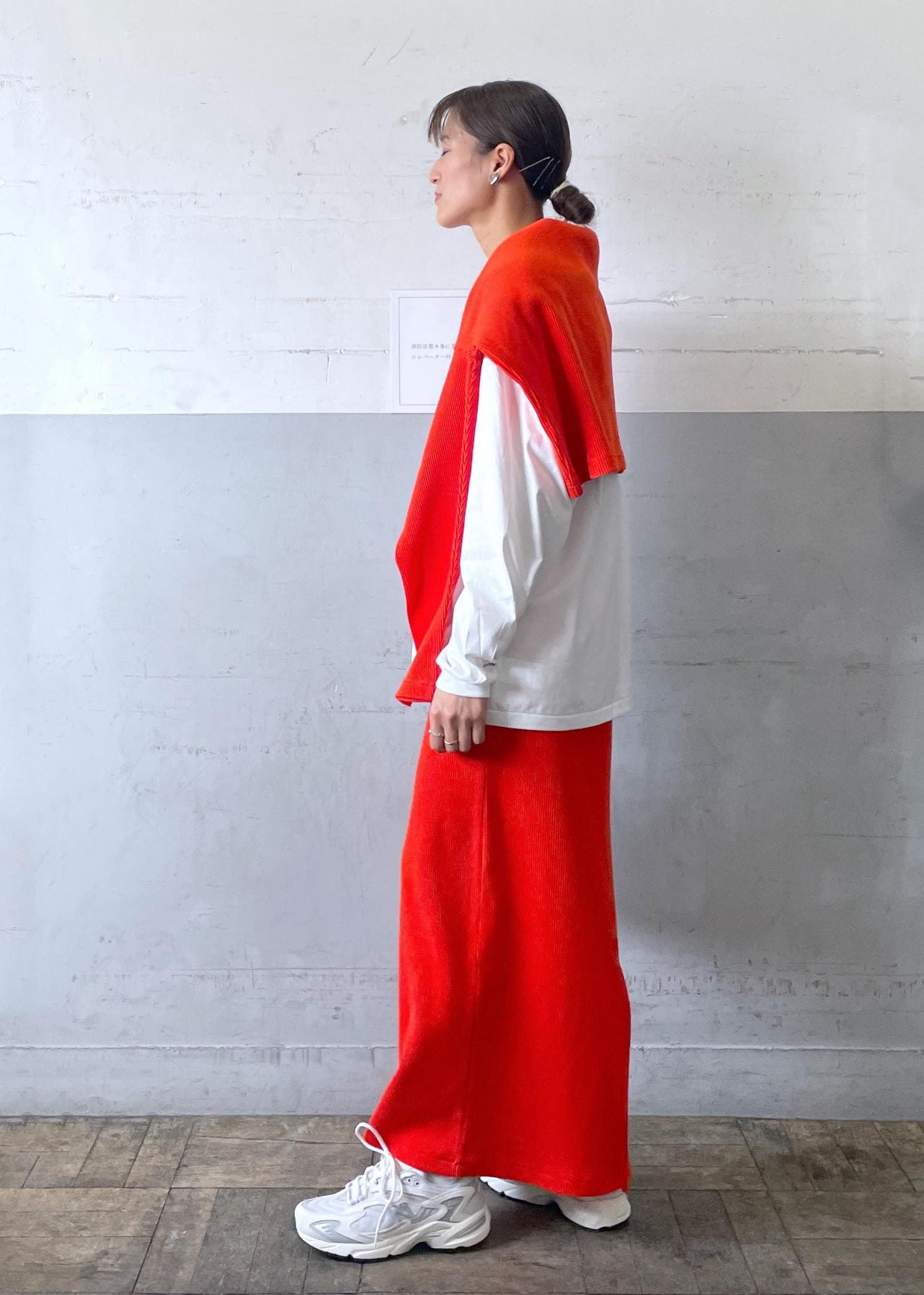 トップスの長め丈にロングスカートのバランスが素敵です。