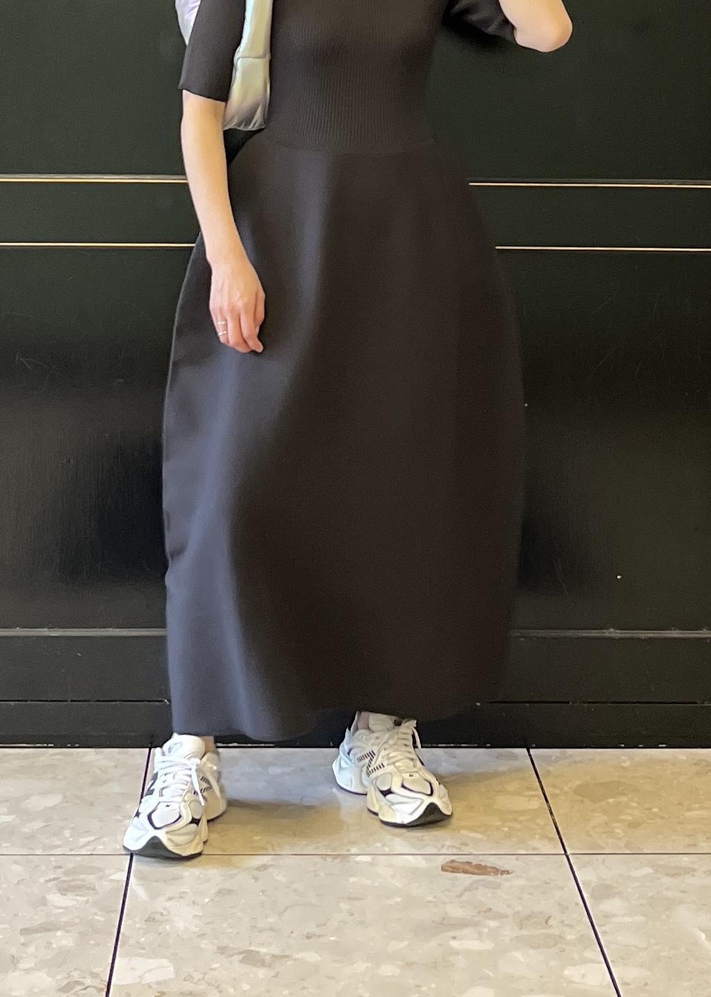 以前少しキレイめな印象で着用したニットワンピースを今回はカジュアルに!(前回分はこちら )