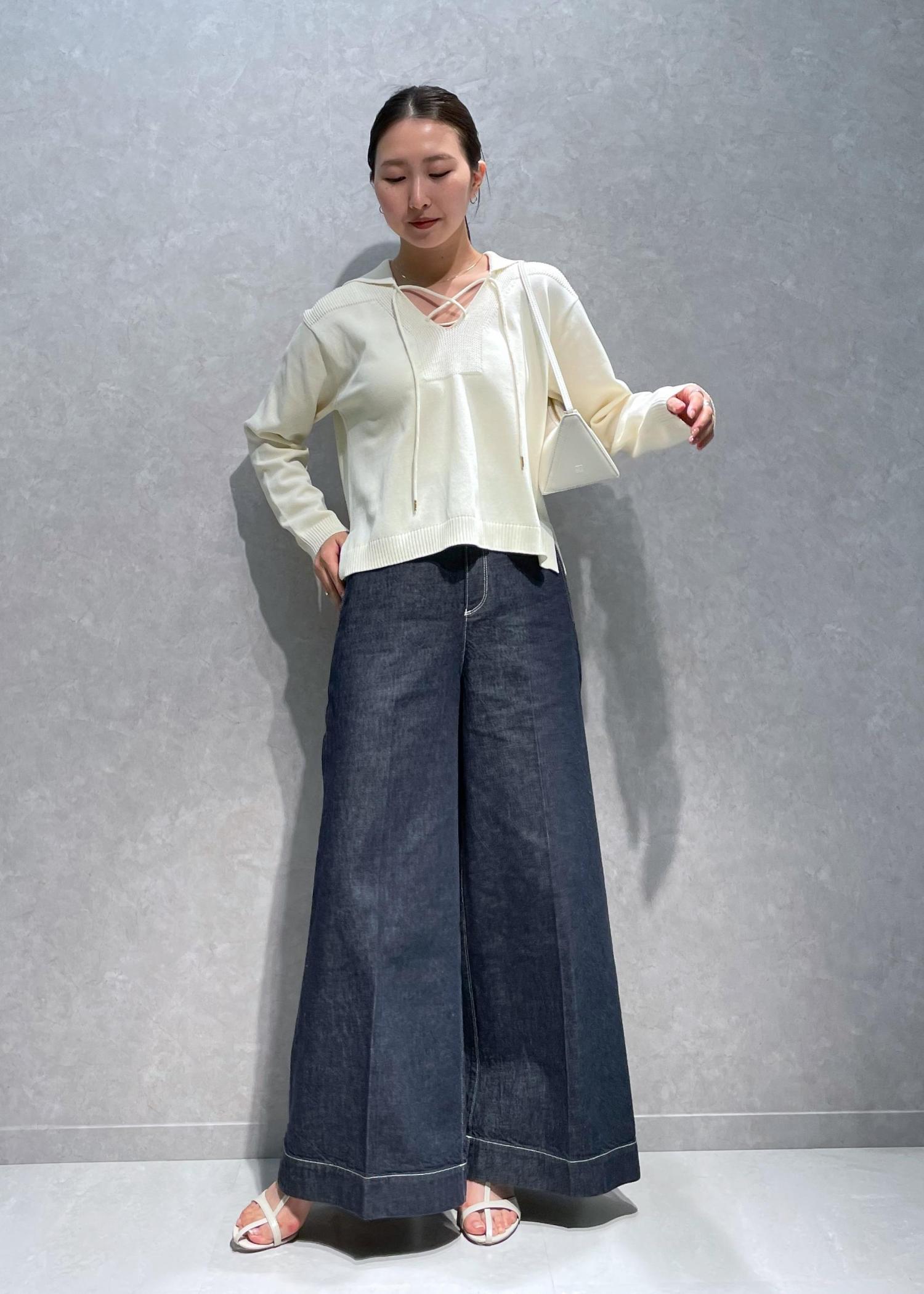 セーラーカラーでデザイン性のあるトップスはデニム合わせでも