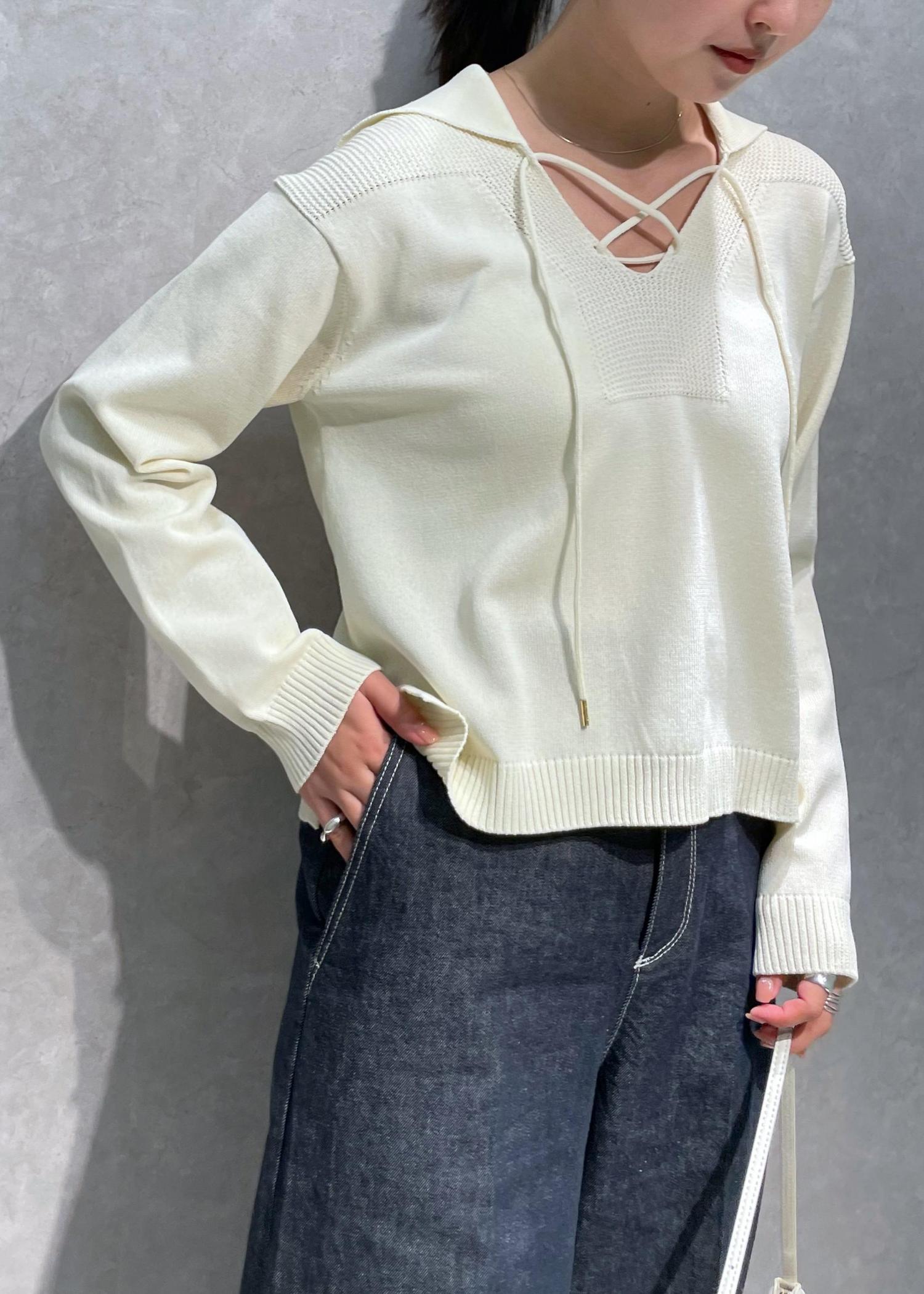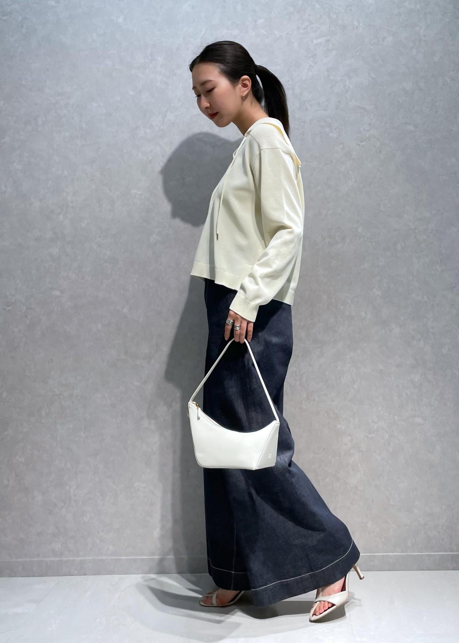 ニットは着丈も長すぎないので、ボトムにインしなくてもバランスよく決まるのが嬉しいポイントです★