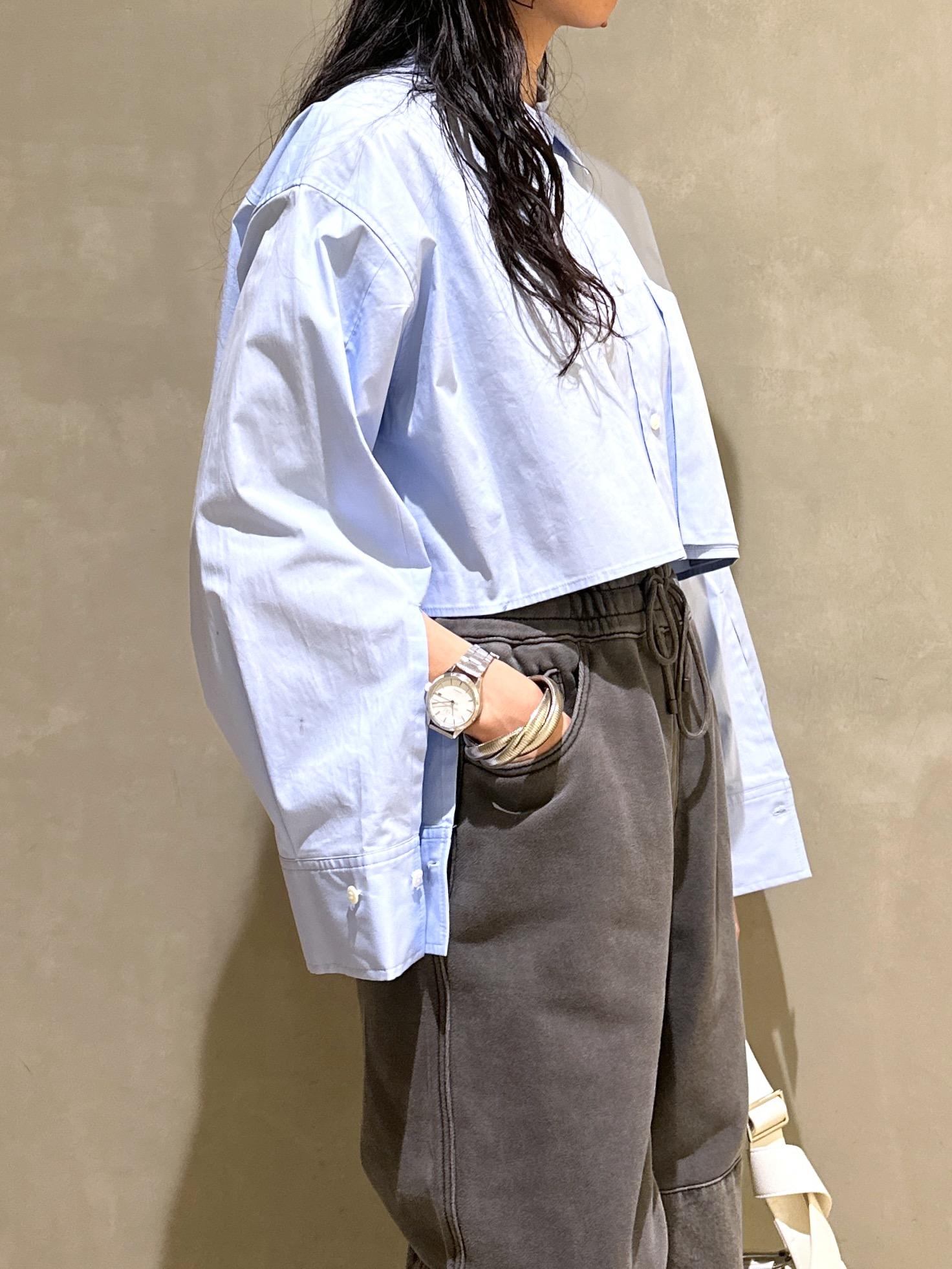先シーズンの秋冬も人気だった短丈シャツが春バージョンで入荷。ハイウエストとのボトムとも相性が良くスタイリングに鮮度が出てくれます!