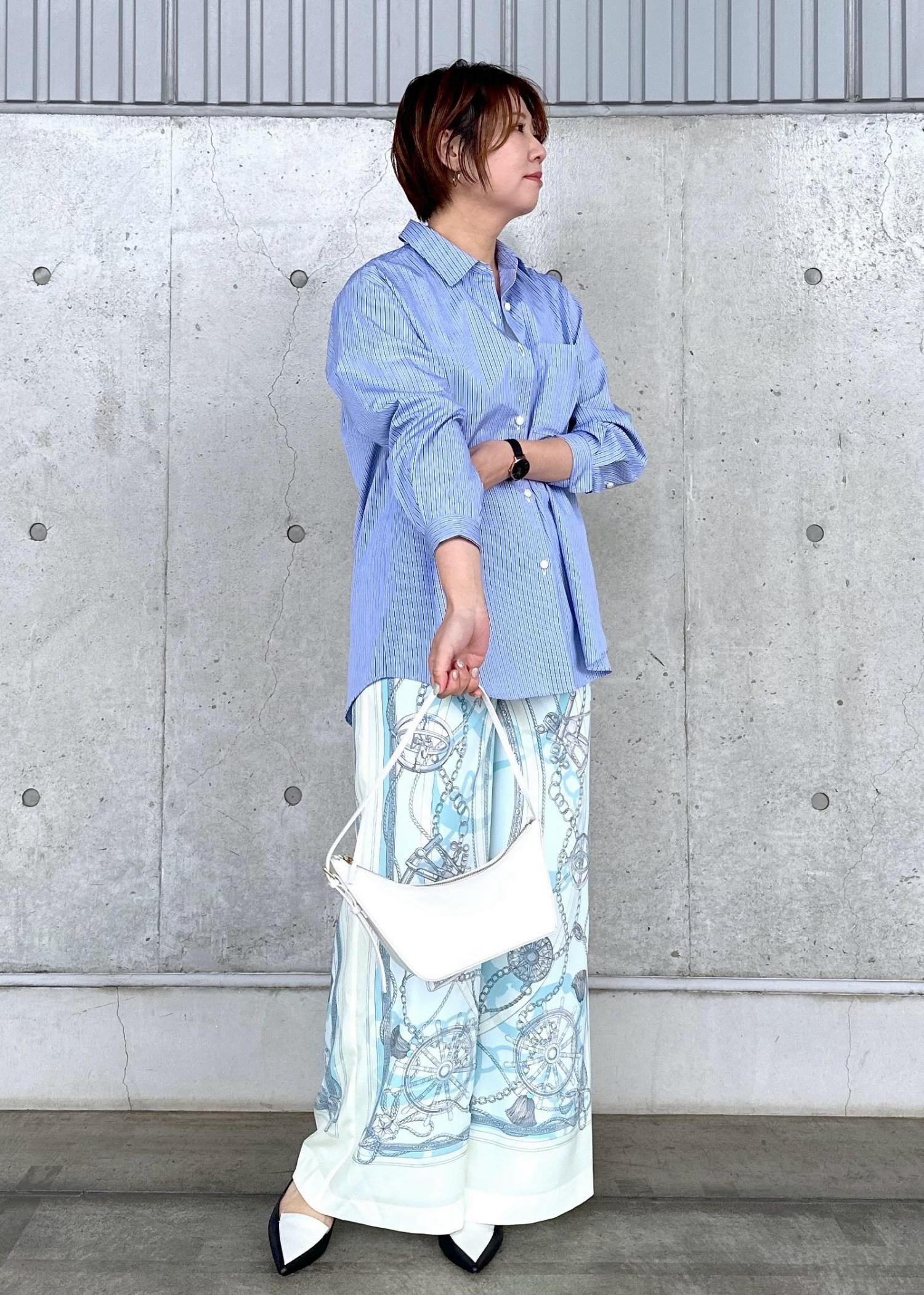 全体的にゆとりのあるシルエットです。ヒップラインもしっかりと隠れる丈感なので腰回りなどカバーしてくれます! -