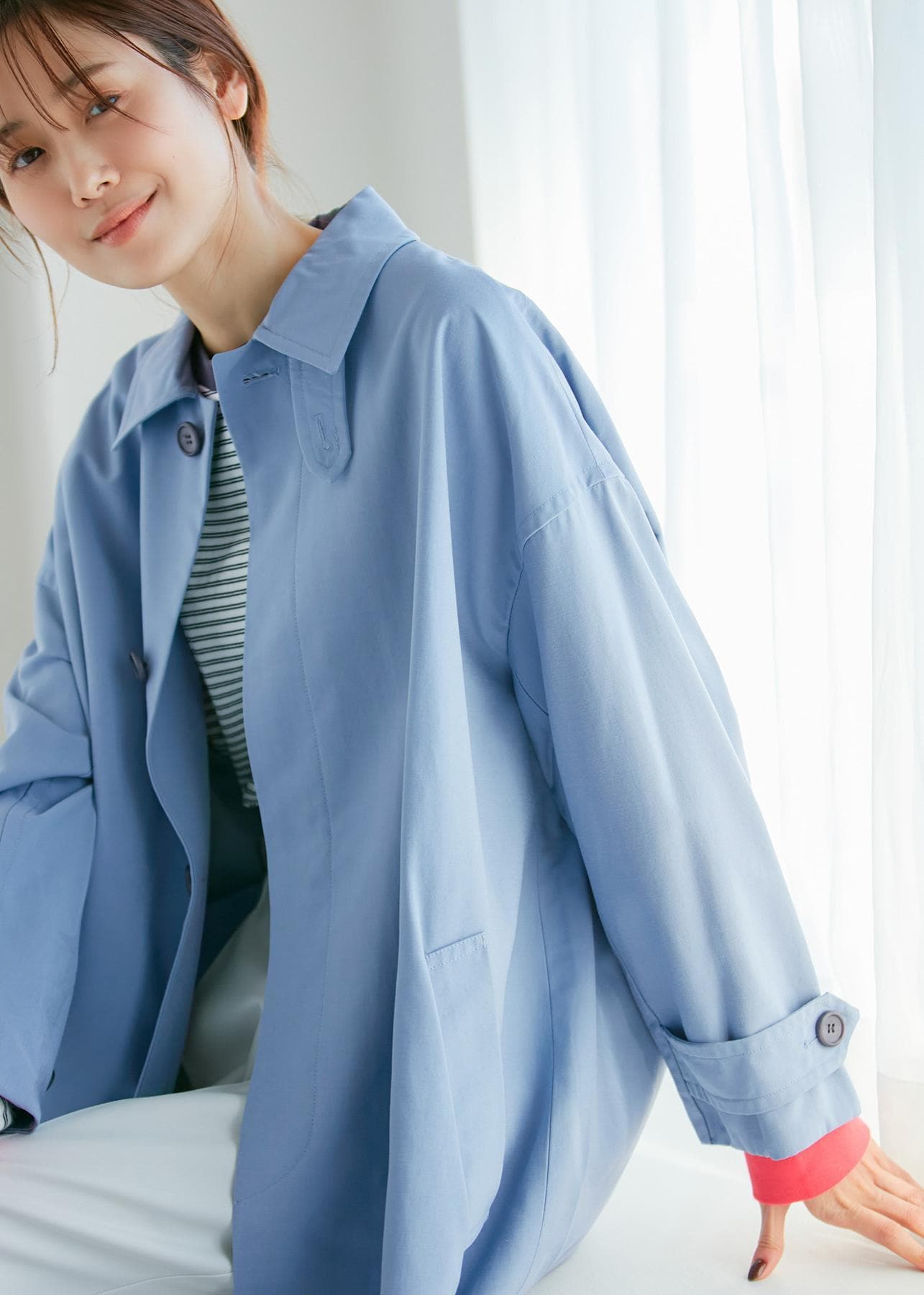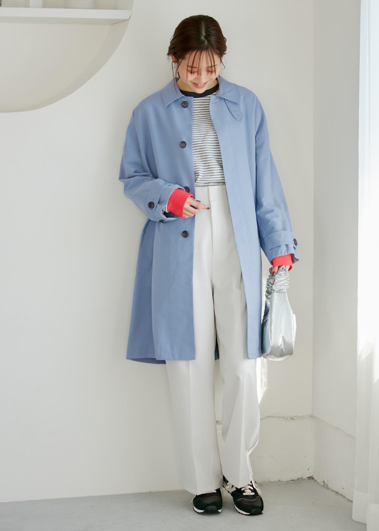 ステンカラーコート×ボーダー