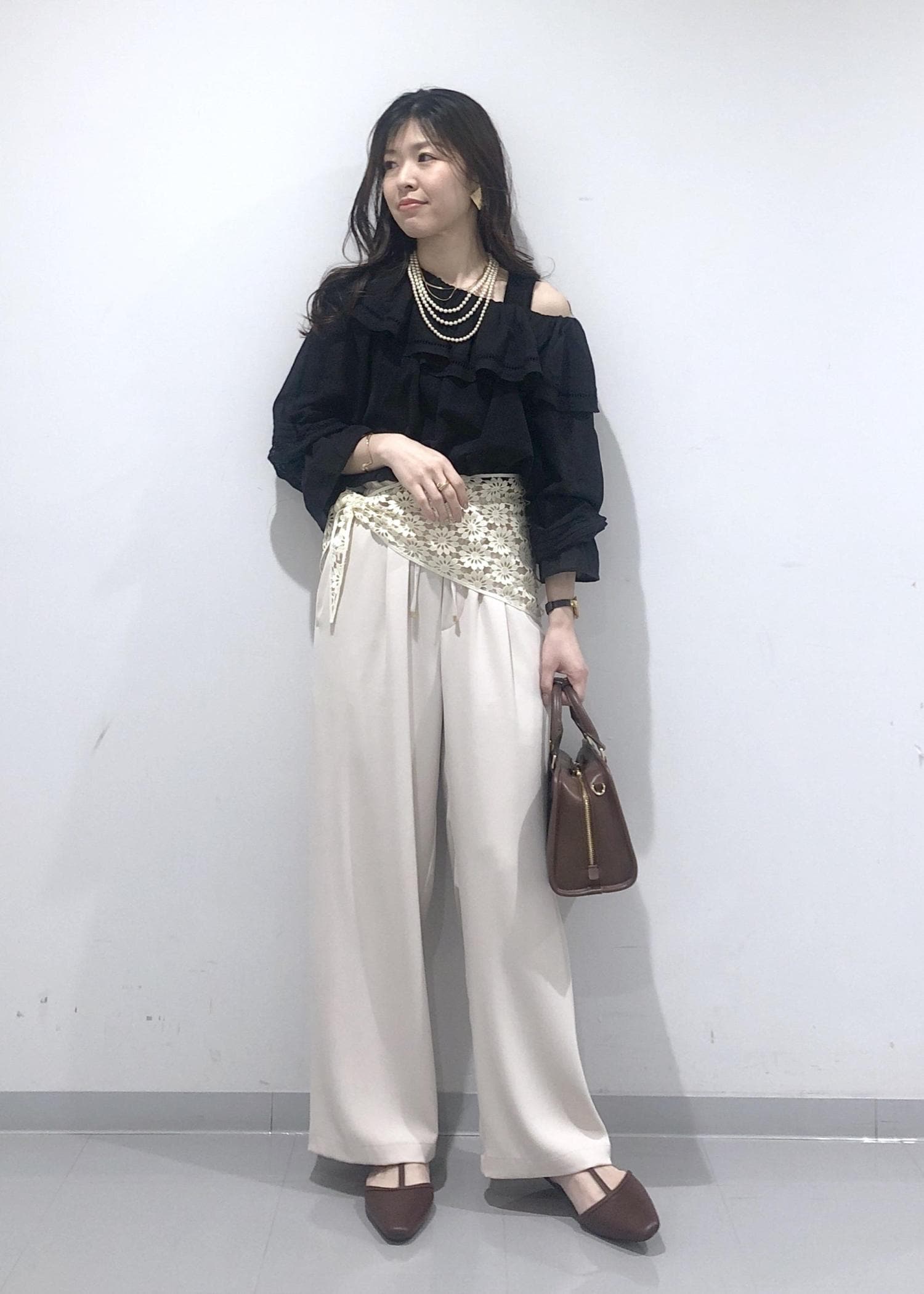 後ろがゴムなので楽ちんに履けます。 -
