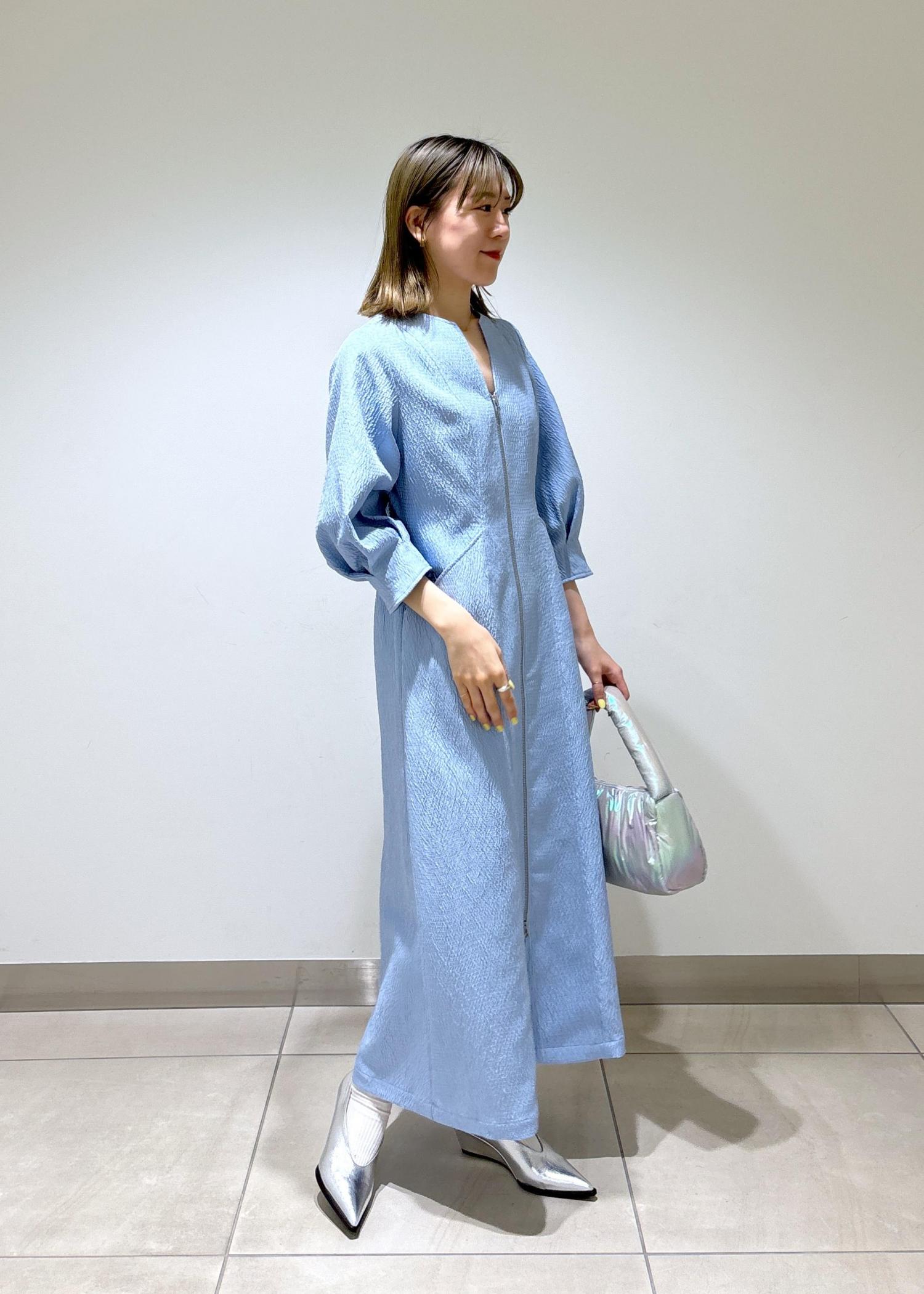 ジャガード素材なのできちんと見えしつつ、ふっくらと立体的なパフスリーブが女性らしさを出してくれます♪