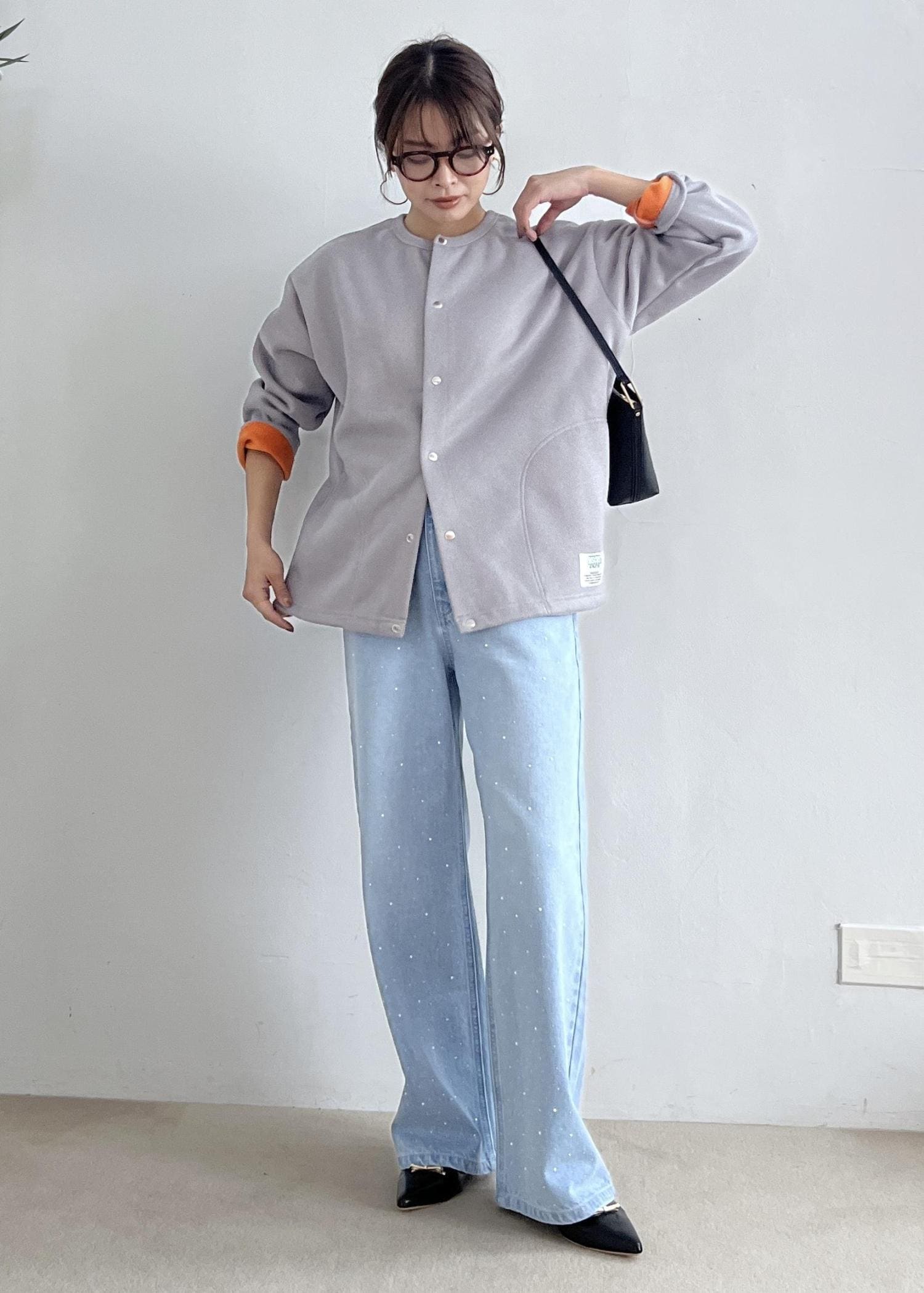 シンプルなコーデですが、シャツのボタンを下だけ少し開けて抜け感の出る着こなしに。