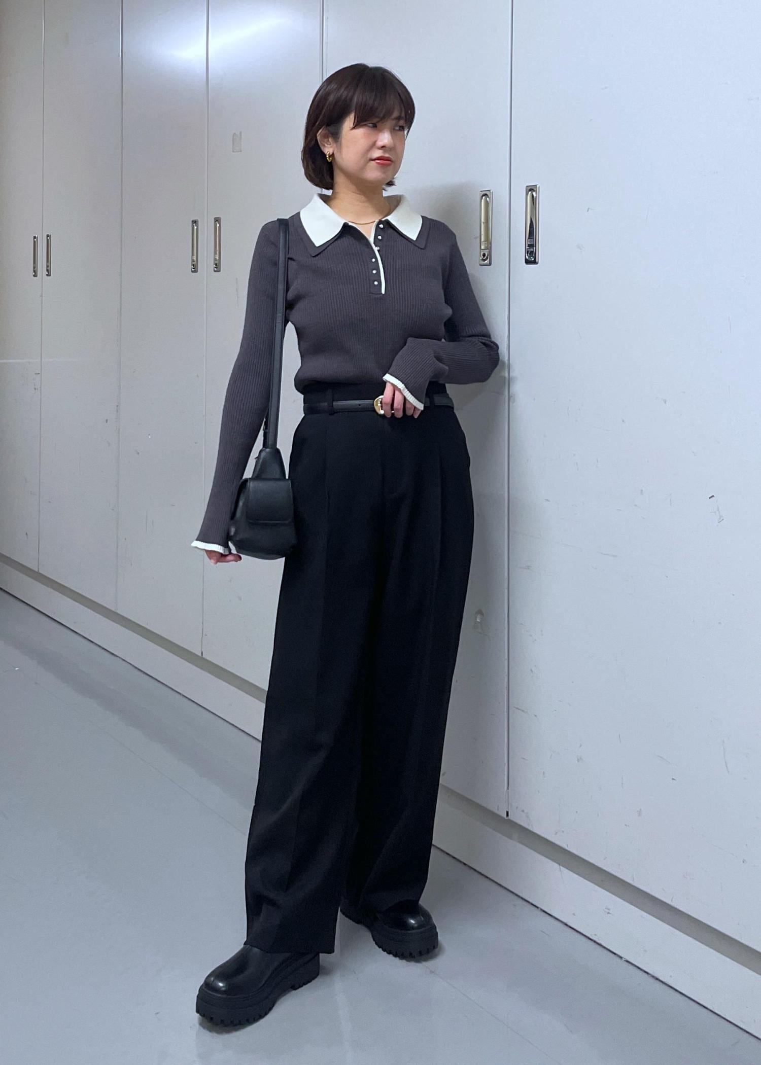 フラットシューズでギリギリ床につかないくらいの着丈です。 -