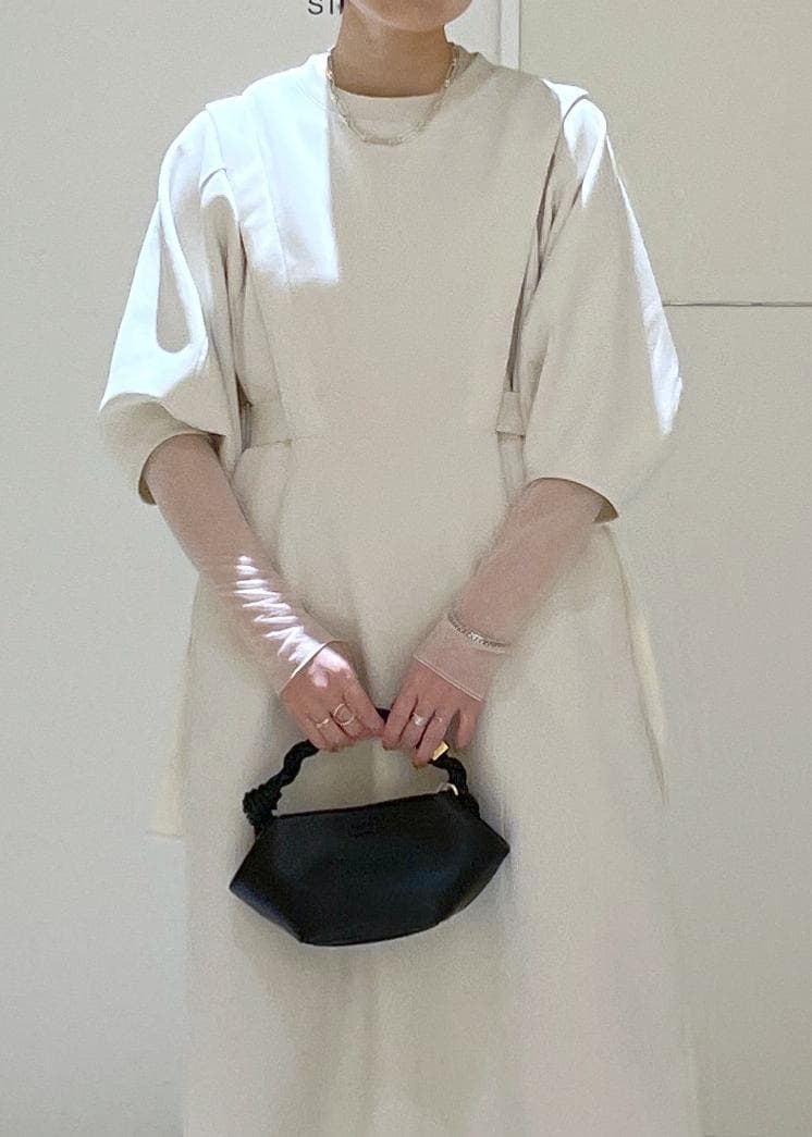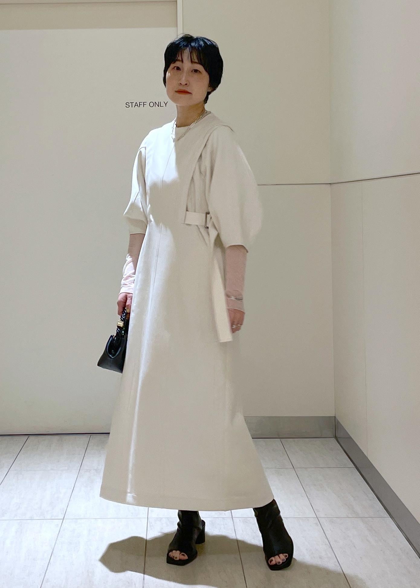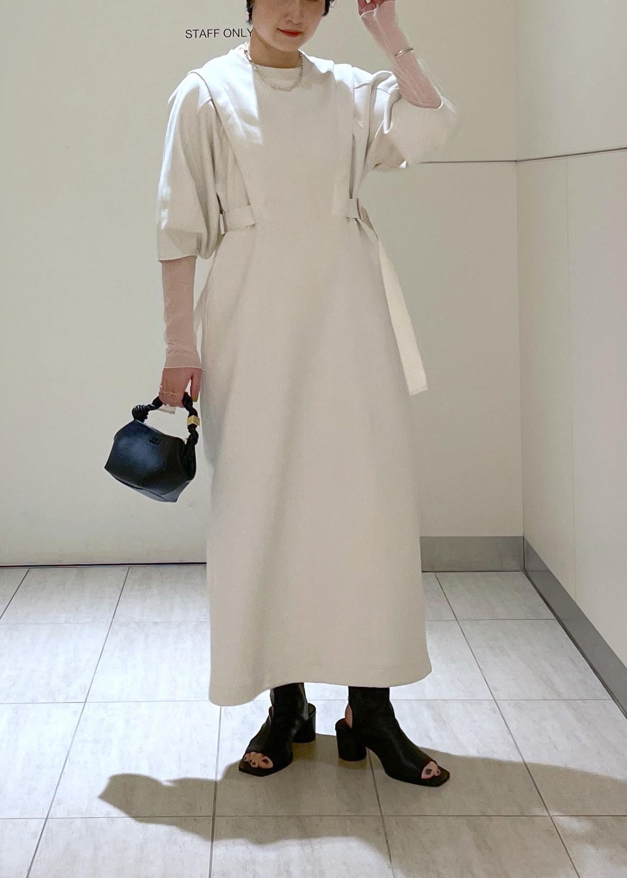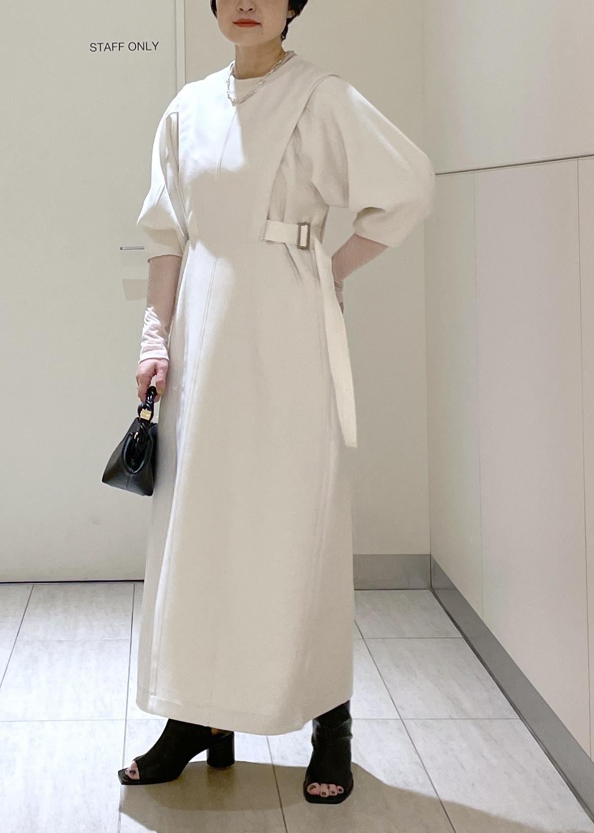 肩からウエストまでのタックデザインや、サイドベルトがデザインポイントとなり、一枚でもパッと映えます。