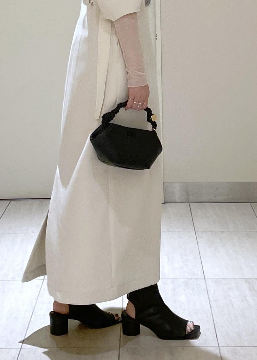 今回は、新作のサイドベルトダンボールワンピースを着てみました。