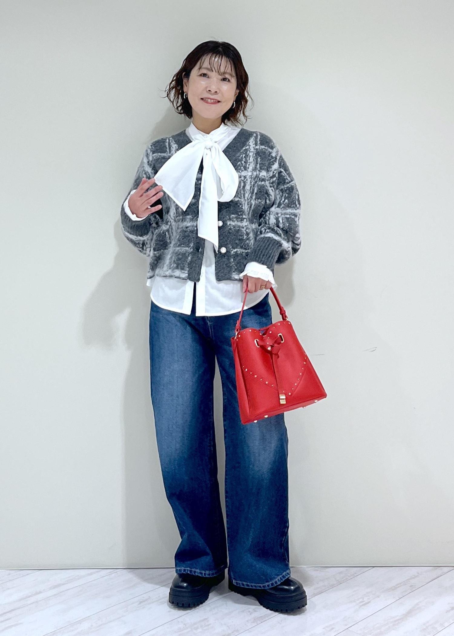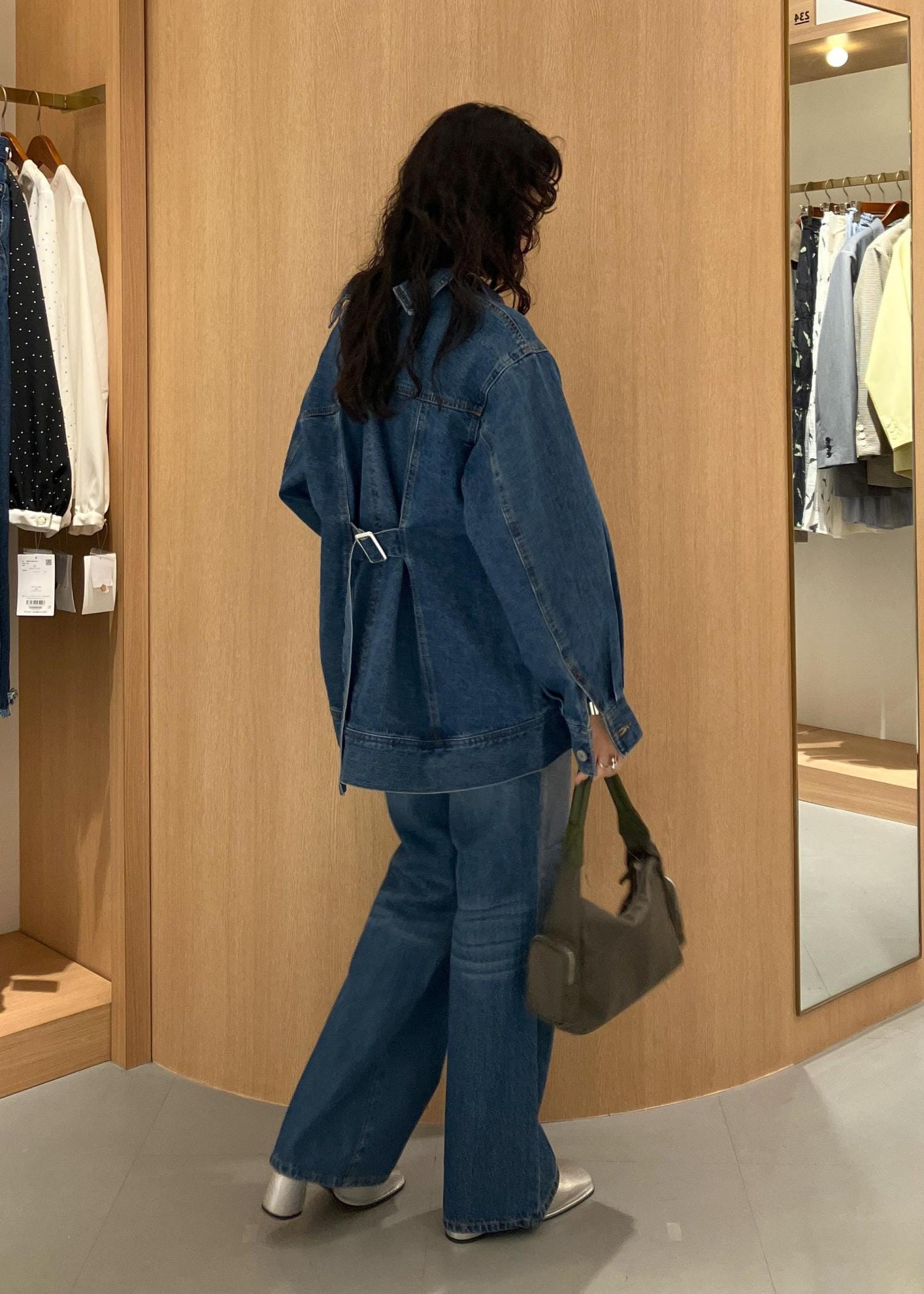 靴はボトムの箔押しと合わせてシルバーを、バッグは落ち着いたカーキを選び、とことんデニムが主役のコーデにしてみましたჱ̒ ֊ ̫ ֊)