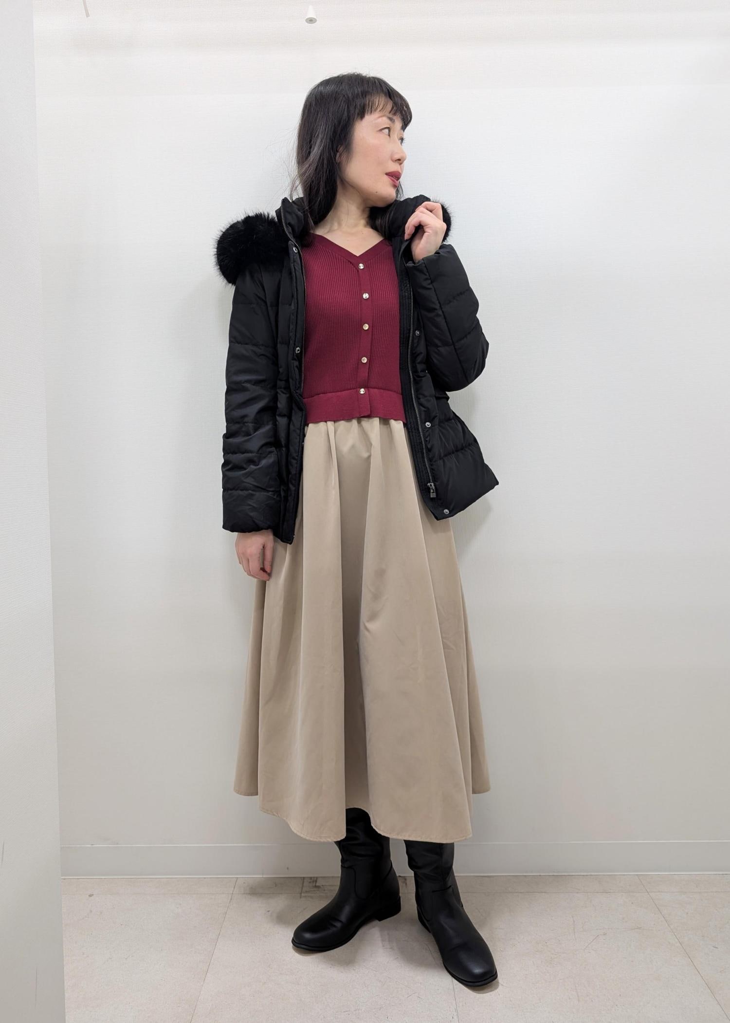 ワンピースのスカートアレンジコーデですが、いつもと違う着こなしをする時はベーシックカラーを選ぶと安心です。
