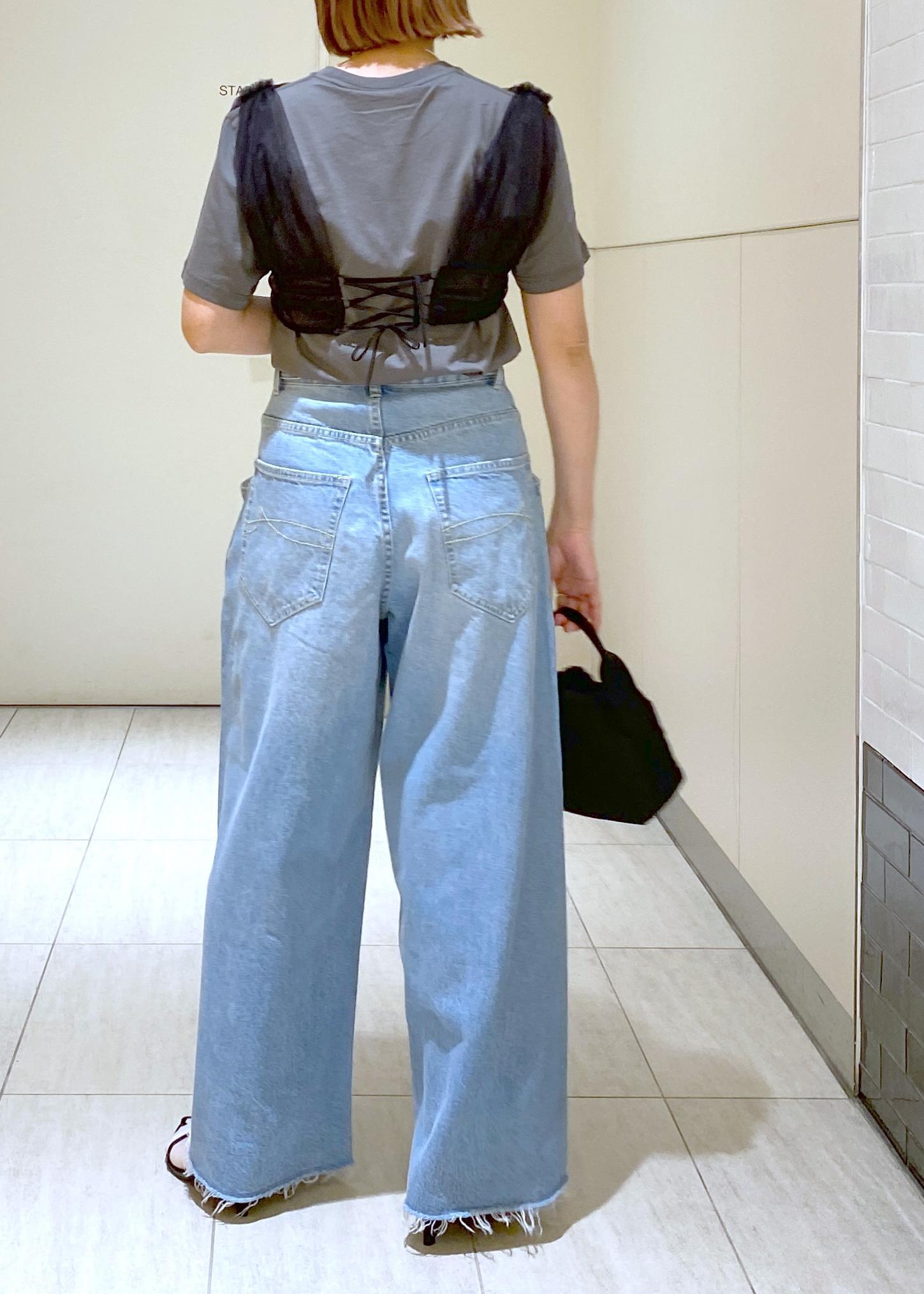 デニムとのリラックス&ラフな合わせなので、チュールブラレットをレイヤードしてモード感をプラスしてます!