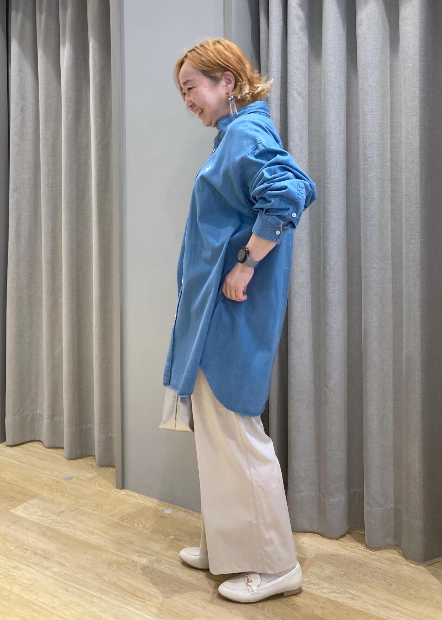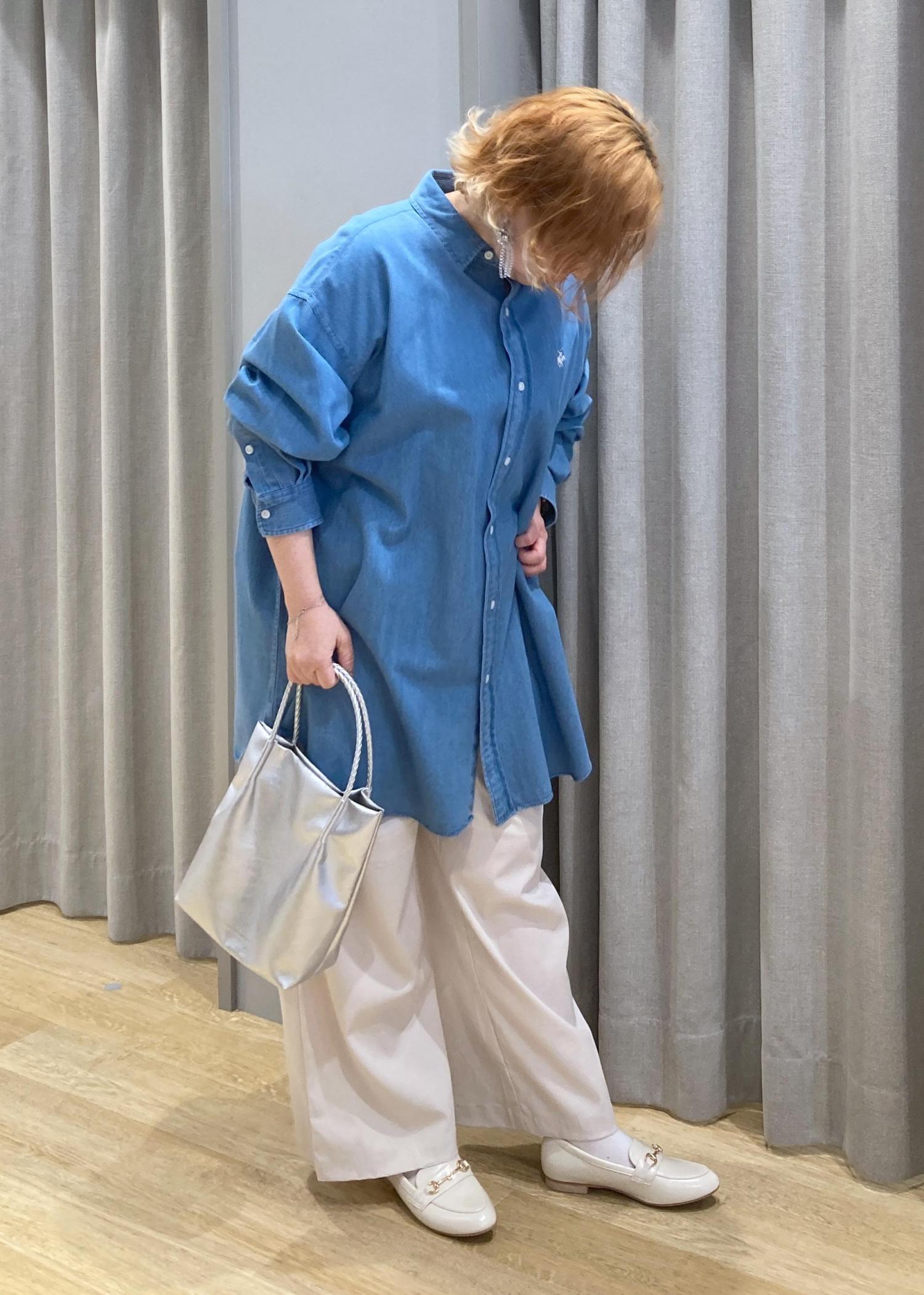 体系をすっぽり隠してくれる、オーバーサイズのシャツです。