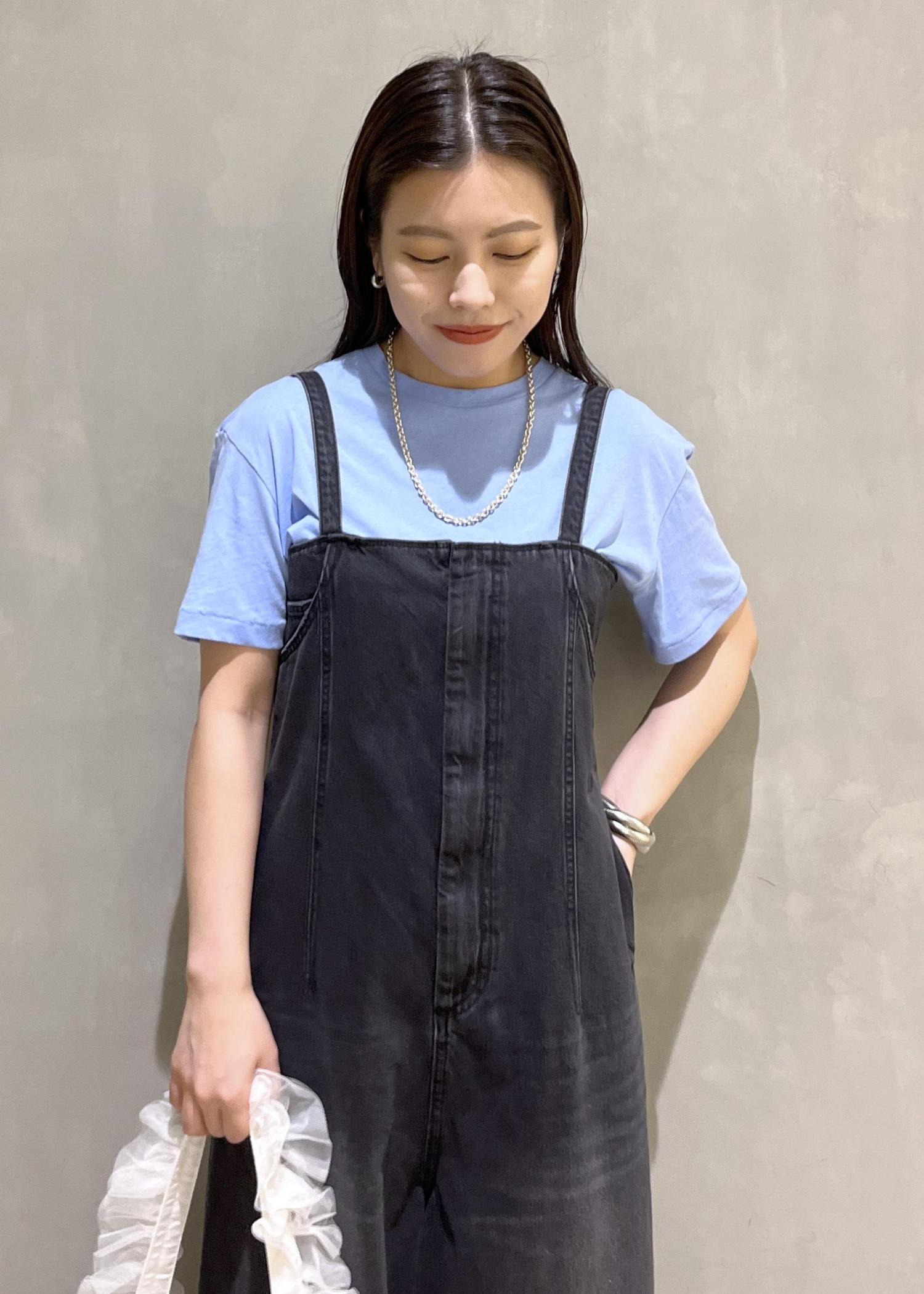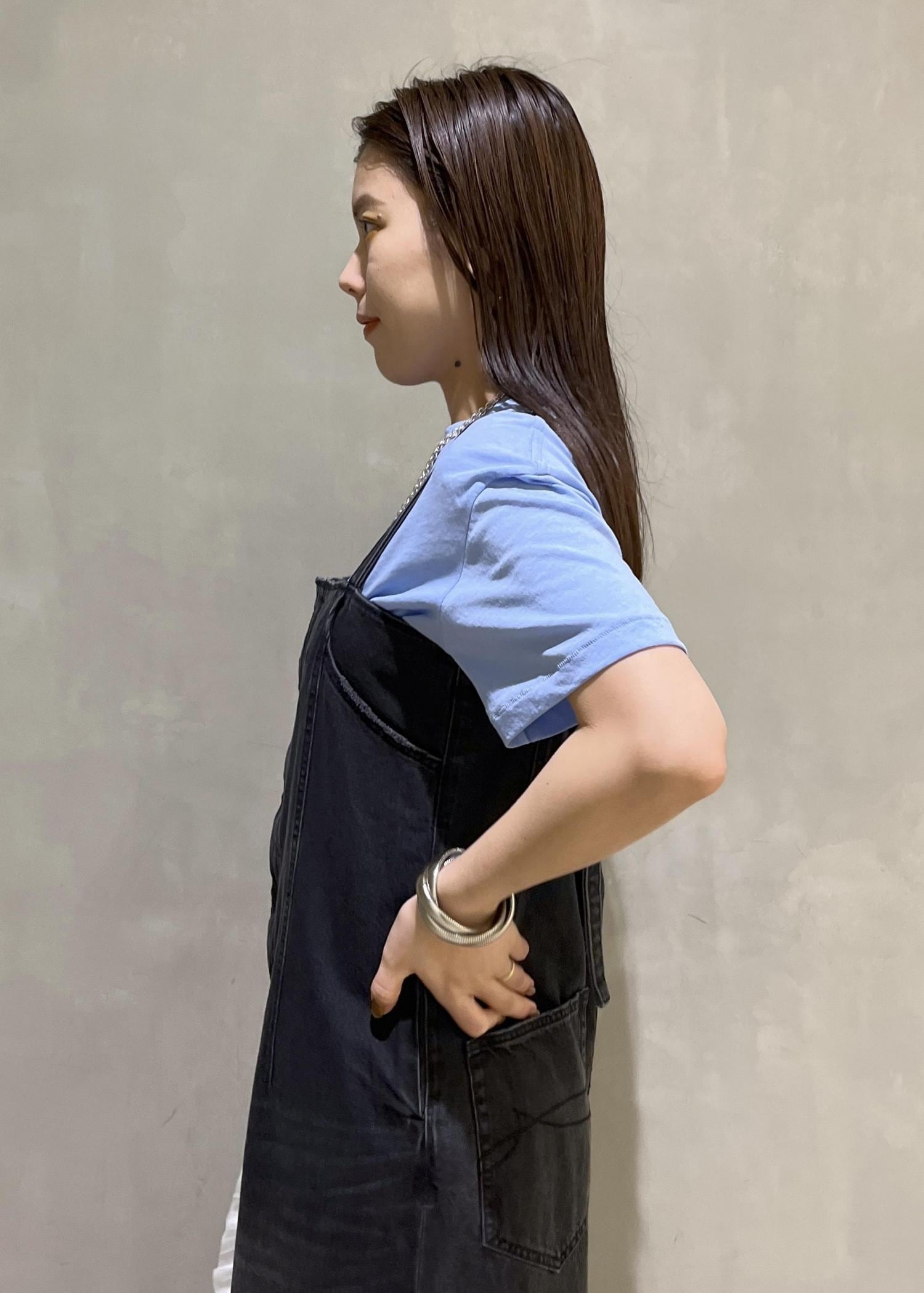 モード感のあるデザインなので、シンプルにTシャツを合わるスタイリングがおすすめ。