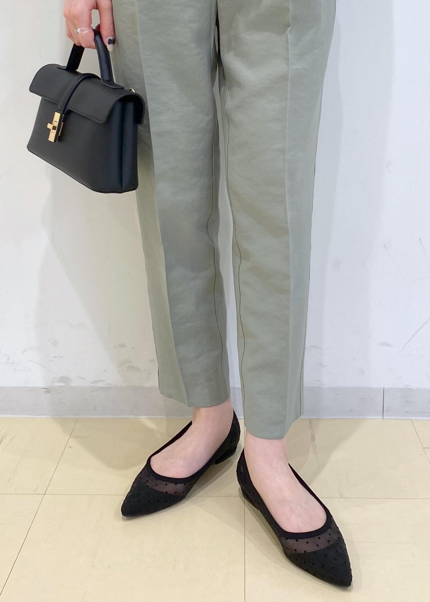 パンプスはドット柄でさりげない可愛いさがありつつ、ポインテッドトゥで女性らしい印象♪