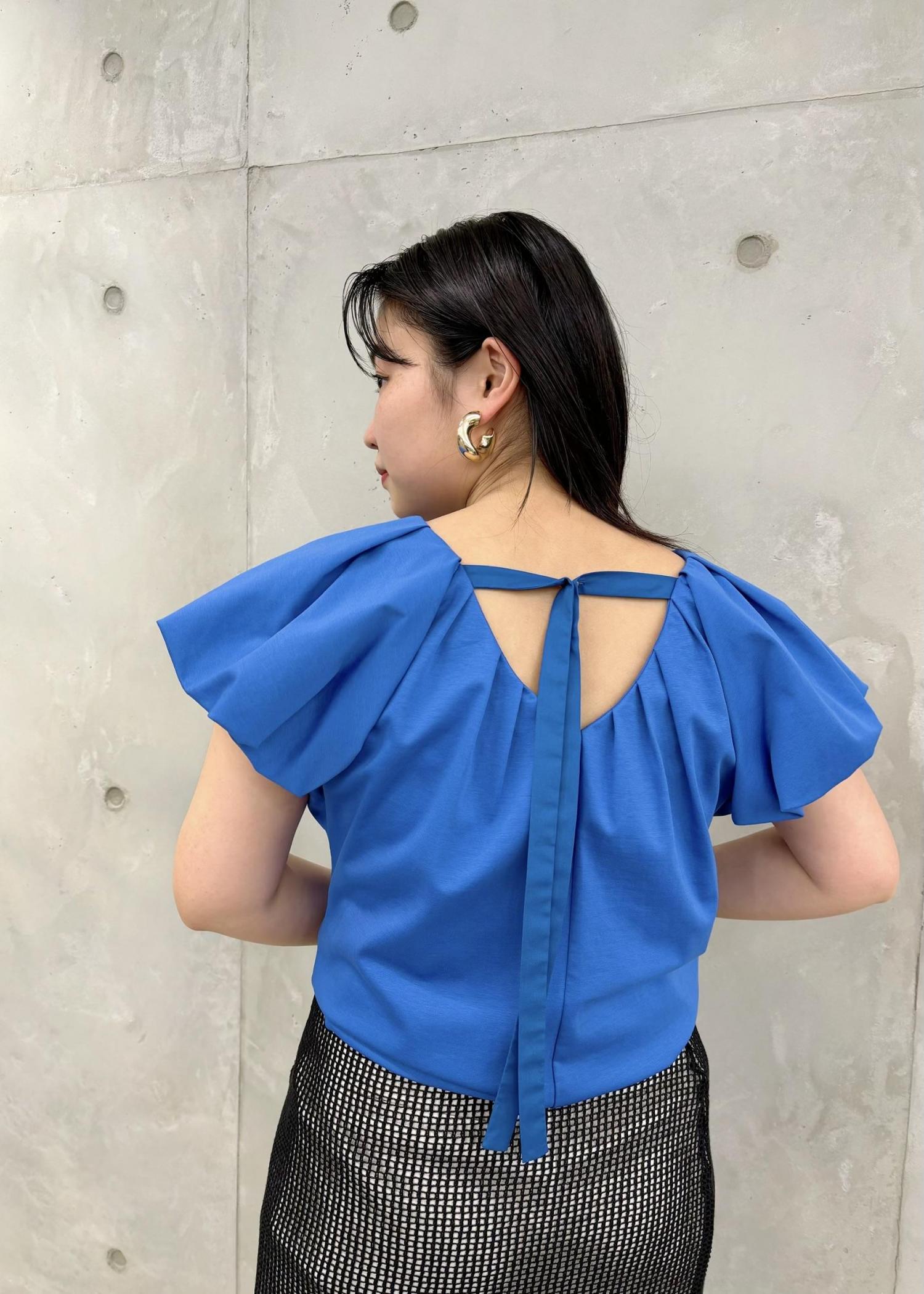 袖にボリュームのあるトップスを合わせて目線を上に◎